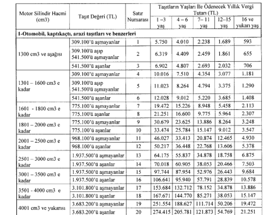 2000 cc ve üzeri araçlarda ise 50 bin 217 lira MTV tahsil edilecek.