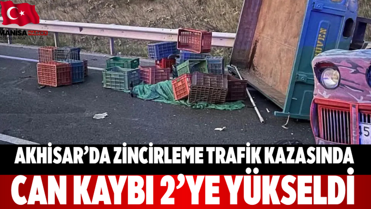 Manisa’nın Akhisar ilçesi Akhisar-Balıkesir yolunun 10. kilometresindeki Gökçeahmet rampasında 4 aracın karıştığı zincirleme trafik kazasında ölenlerin sayısı 2’ye yükseldi.