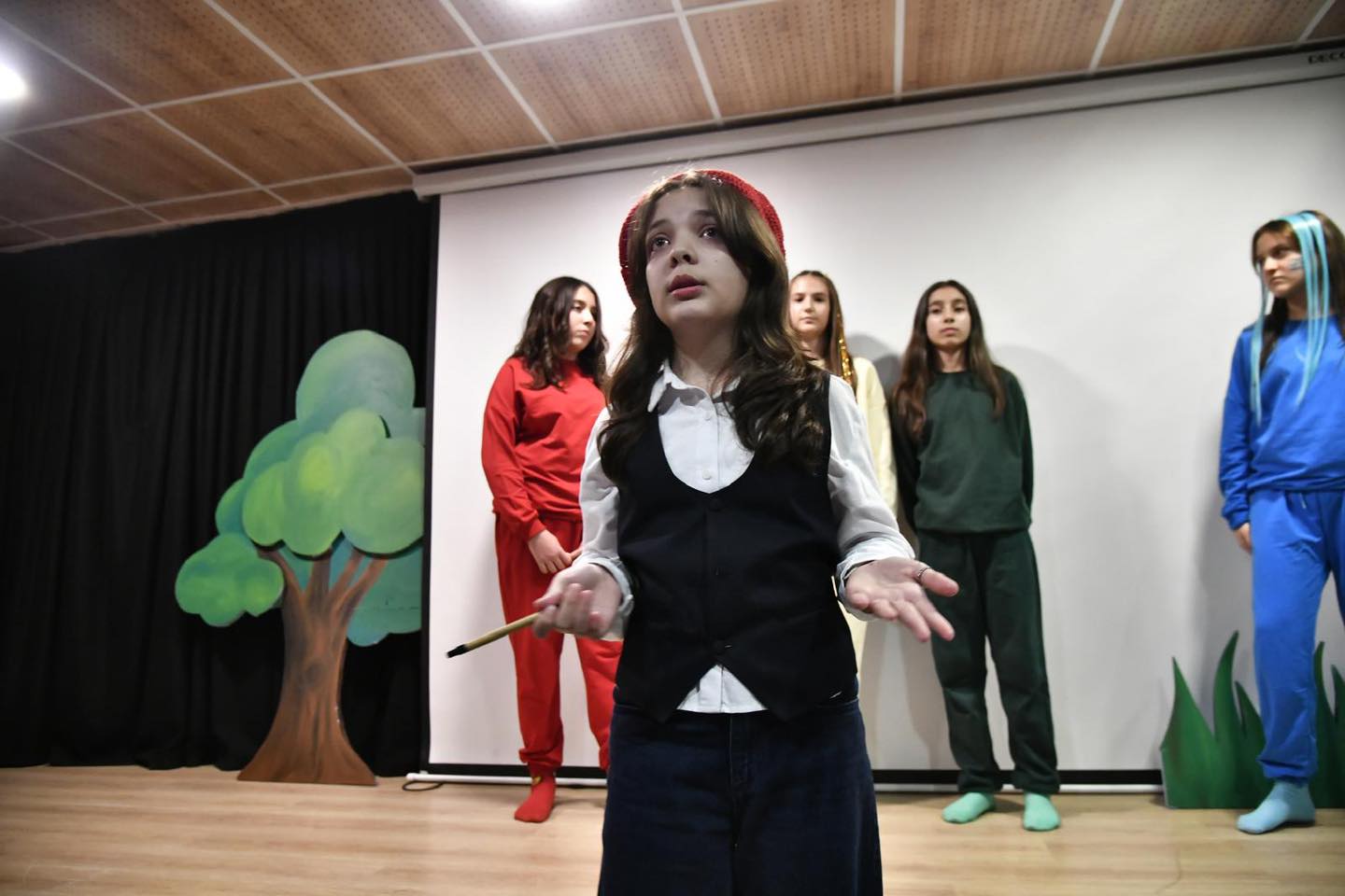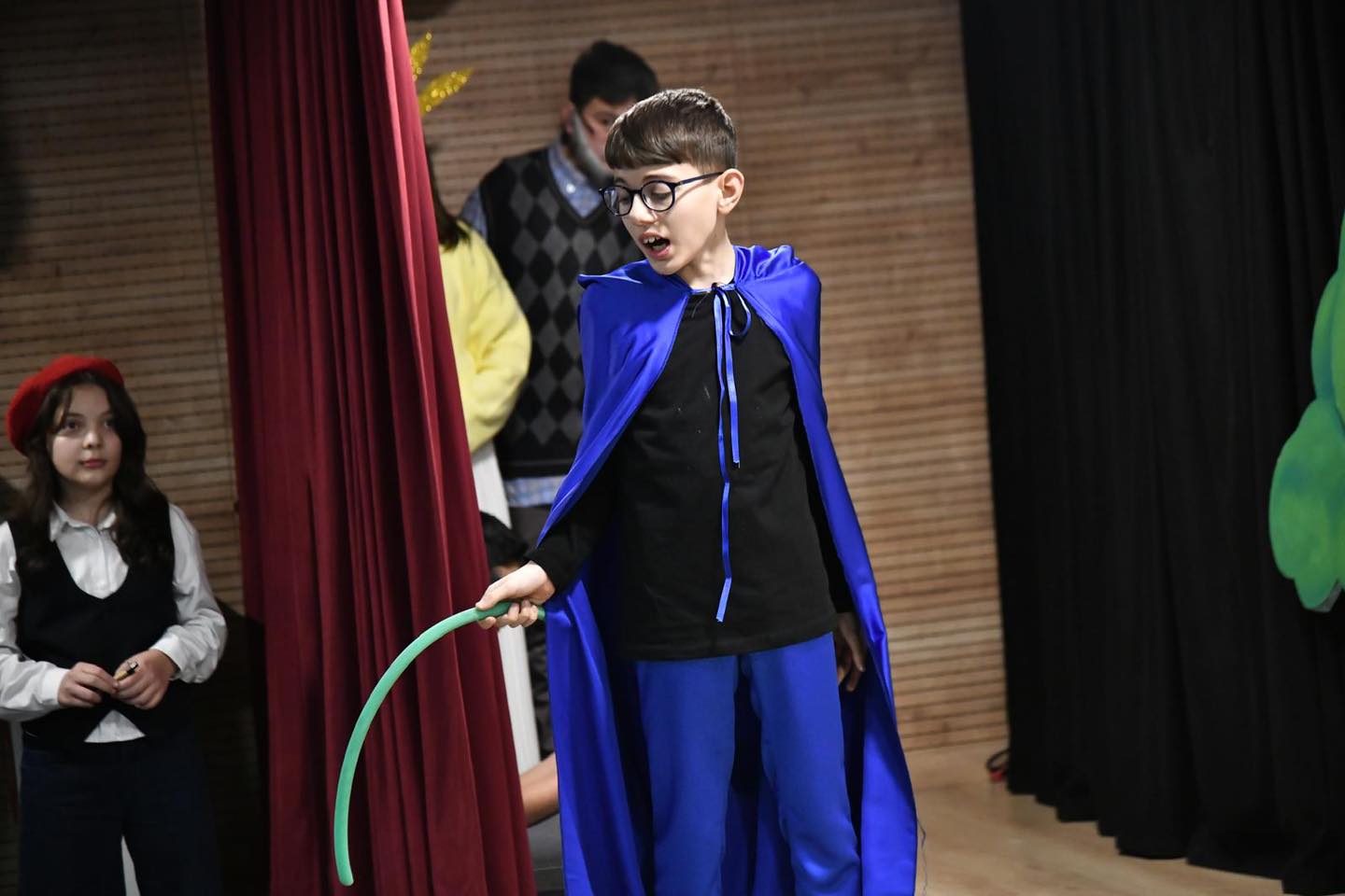 Sahne performanslarıyla dikkat çeken öğrenciler, oyunda sergiledikleri rol yorumları ve sahne hakimiyetleriyle izleyicilerden beğeni topladı. Renkli kostümler ve sahne dekorları eşliğinde sahnelenen oyun, salonu dolduran izleyiciler tarafından ilgiyle takip edildi.