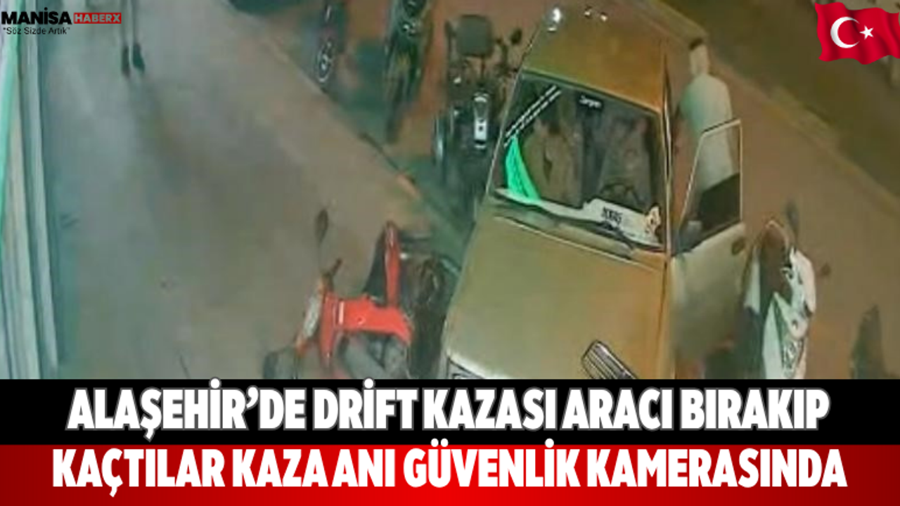 Manisa’nın Alaşehir ilçesinde kavşakta drift atarak ilerleyen bir araç sürücüsünün kontrolünü kaybetmesi sonucu meydana gelen kaza güvenlik kamerasına yansıdı. Araç önce refüjdeki direğe, ardından park halindeki motosikletlere çarptı. Kazanın ardından sürücü ve beraberindeki iki kişi aracı bırakarak olay yerinden kaçtı.