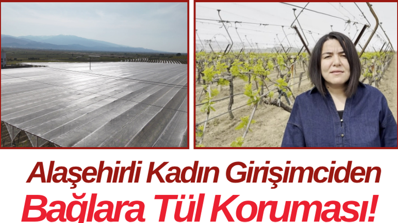 Alaşehir ilçesine bağlı Kasaplı Mahallesi’nde yaşayan kadın girişimci Müşerref Üründü, üzüm bağlarını iklim risklerine karşı korumak amacıyla özel tül sistemi uyguluyor.