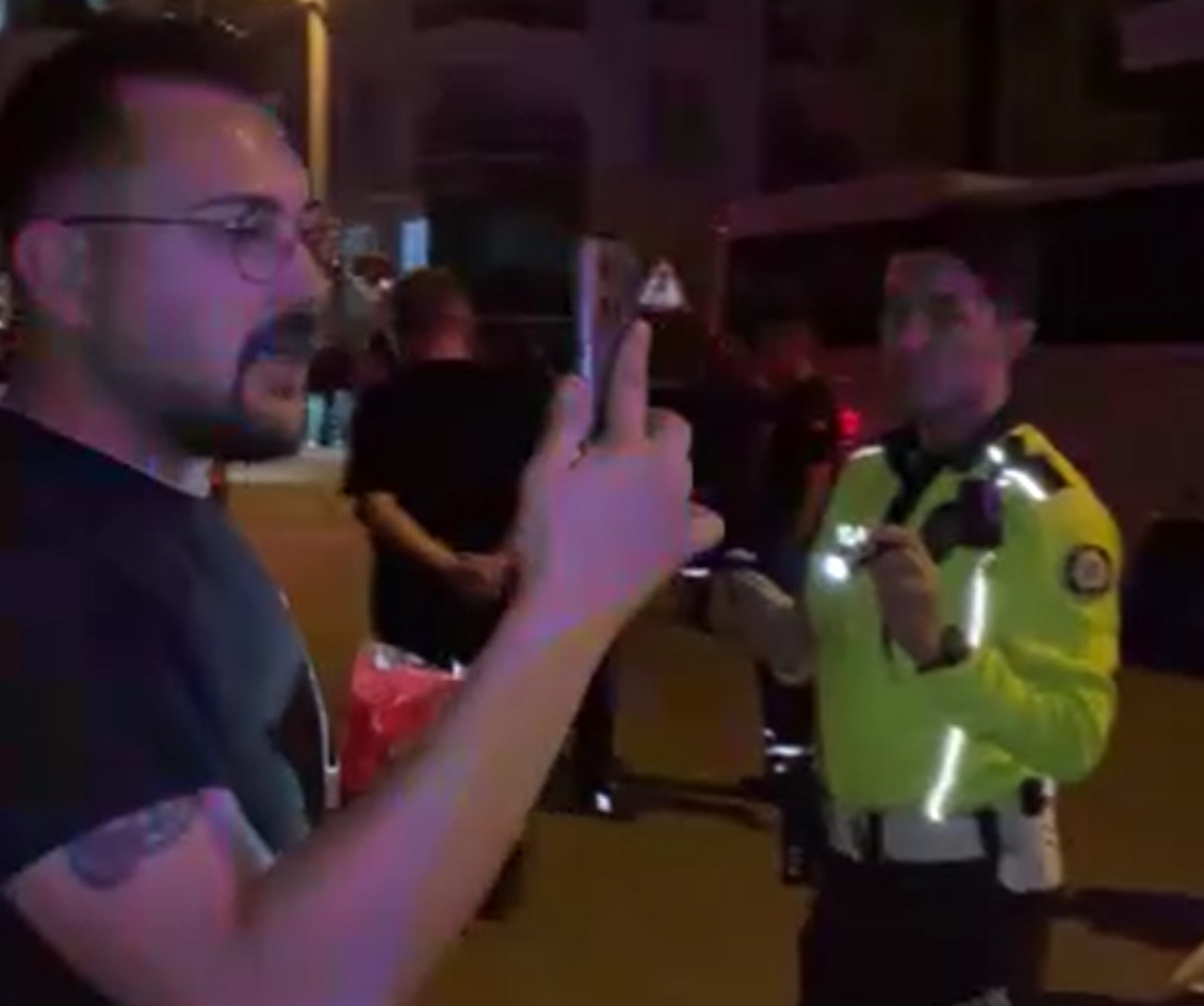 Sürücü, polis ekiplerinin yarım saatlik ikna çabasına rağmen alkolmetreyi kullanmayı reddetti. “Artistlik yapıyorum” diyen sürücü, bir yandan kraker yerken bir yandan da cep telefonuyla polis ekiplerinin görüntülerini kaydetti ve polis ekiplerine bağırarak müdahaleyi güçleştirdi.