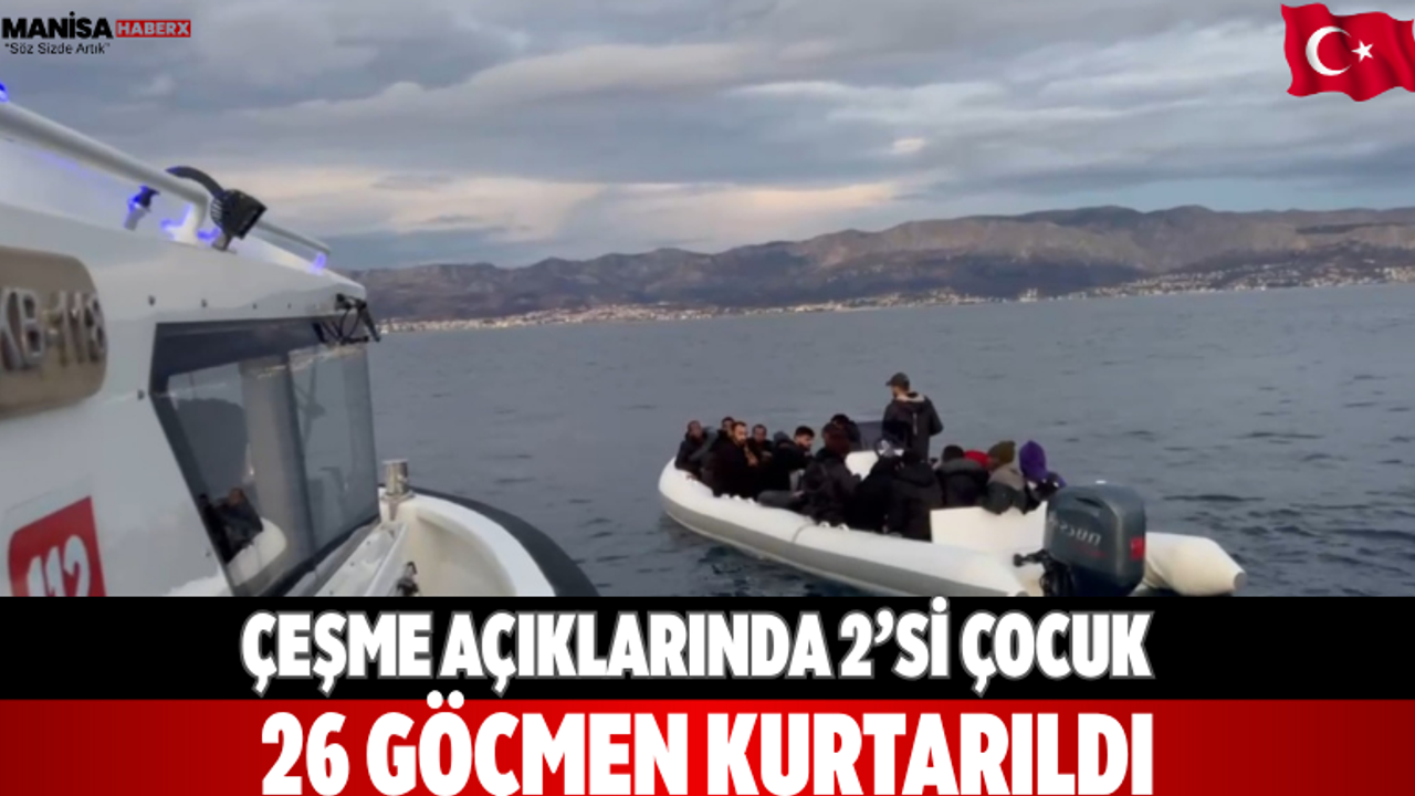 İzmir’in Çeşme ilçesi açıklarında lastik botta bulunan 2’si çocuk 26 düzensiz göçmen, Sahil Güvenlik ekipleri tarafından kurtarıldı.
