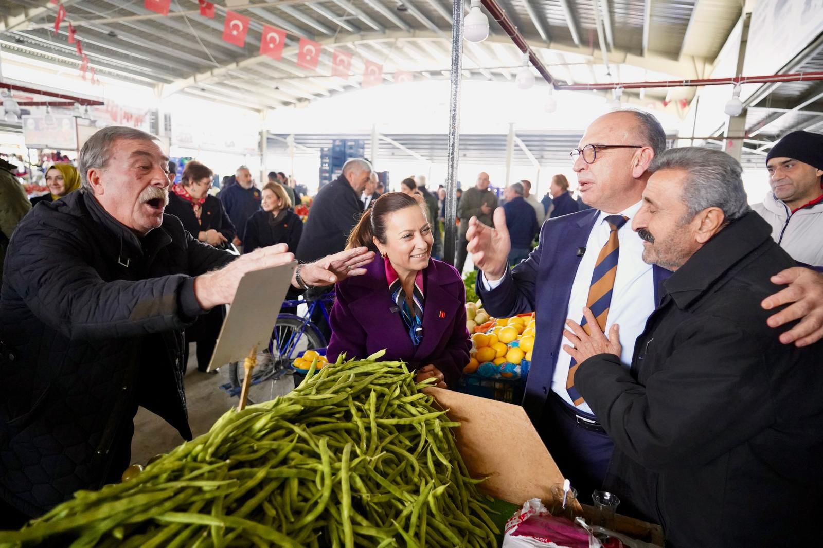 Çarşı ziyaretinin ardından CHP heyeti, Turgutlu Cuma Pazarı’nı gezdi. Pazar alanında alışveriş yapan vatandaşlar ve pazarcı esnafıyla görüşmeler gerçekleştirildi. Vatandaşlar, temel gıda ürünlerindeki fiyat artışlarının bütçelerini zorladığını ifade etti.