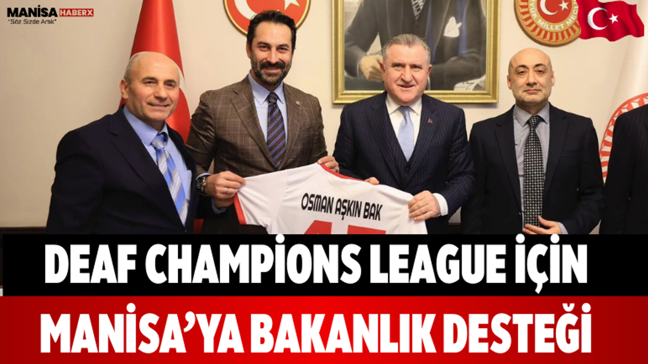 Deaf Champions League organizasyonunun Manisa’da düzenlenmesine yönelik çalışmalar kapsamında önemli bir ziyaret gerçekleştirildi. Organizasyon sürecinde yer alan Arınç, Manisa İşitme Engelliler Spor Kulübü yöneticileri ve AK Parti Manisa Milletvekili Murat Baybatur ile birlikte Gençlik ve Spor Bakanı Osman Aşkın Bak’ı makamında ziyaret ettiklerini açıkladı. Ziyarette, organizasyona ilişkin detaylı bir dosyanın Bakan Bak’a sunulduğu bildirildi.