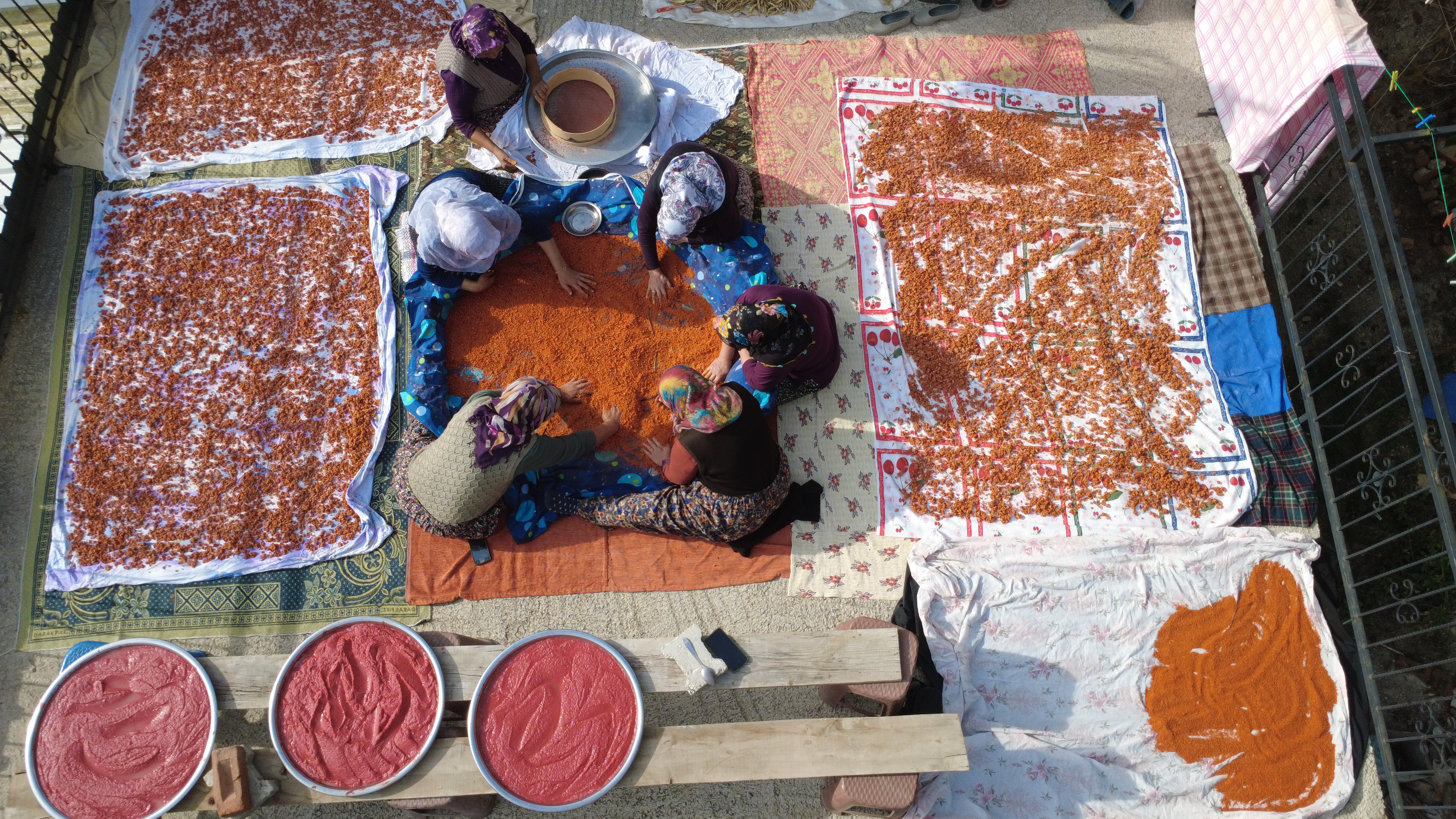 Süreç tamamlandıktan sonra tarhana parçaları bez üzerine seriliyor, kurutuluyor ve ufalanarak toz haline getiriliyor. Son aşamada elekten geçirilip tüketime hazır hale geliyor.
