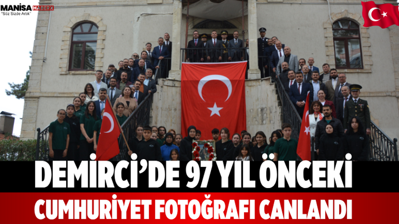 Manisa’nın Demirci ilçesi, Cumhuriyet’in 102. yılı kutlamalarında tarihe yolculuk niteliğinde özel bir etkinliğe ev sahipliği yaptı. Cumhuriyet’in 5. yılı kutlamalarında 29 Ekim 1928’de Hükümet Konağı önünde çekilen tarihi fotoğraf, tam 97 yıl sonra aynı noktada yeniden canlandırıldı.