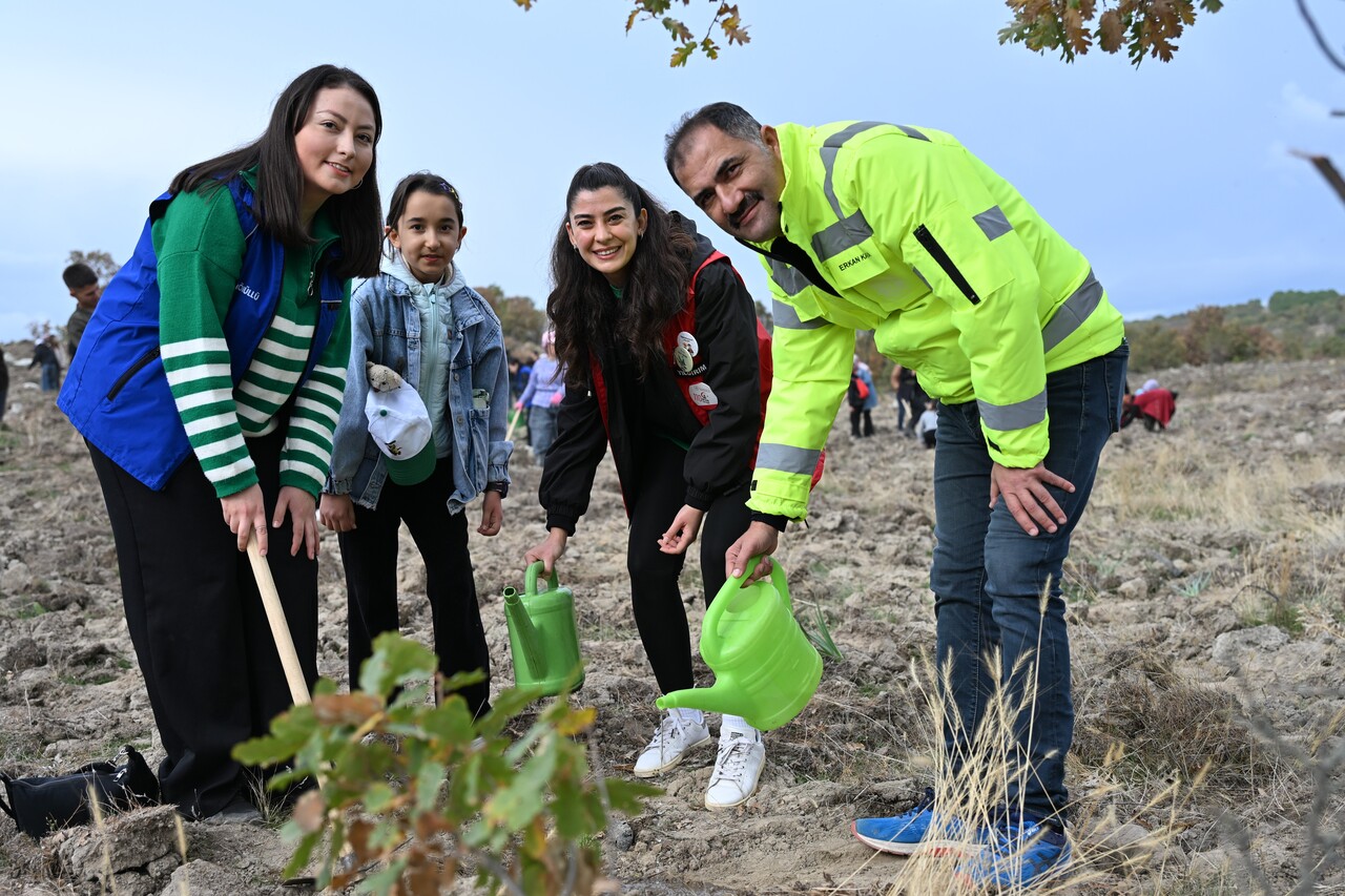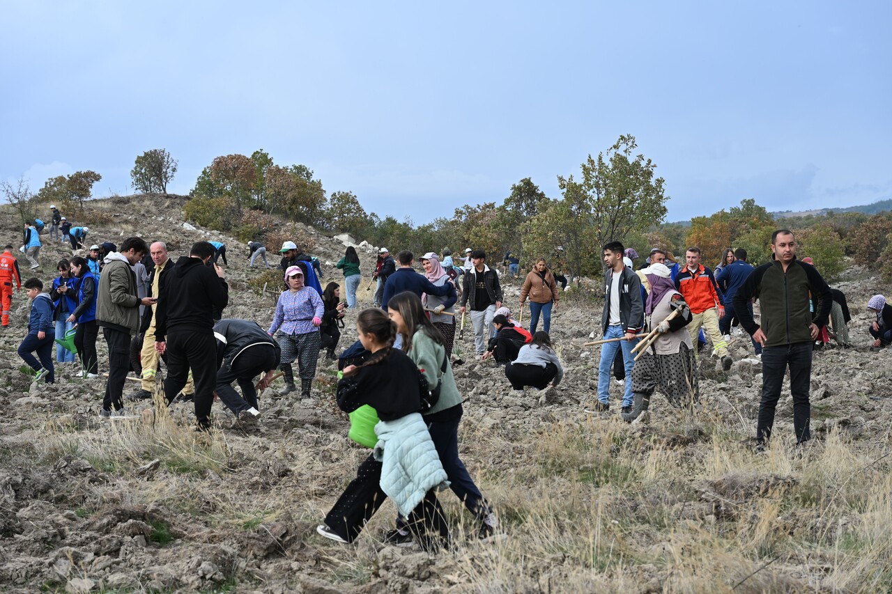 Fidan dikimi kapsamında fıstık çamı ve mavi servi fidanları toprakla buluşturuldu. Öğrenciler ve gençler de etkinliğe katılarak doğaya katkı sağladı.