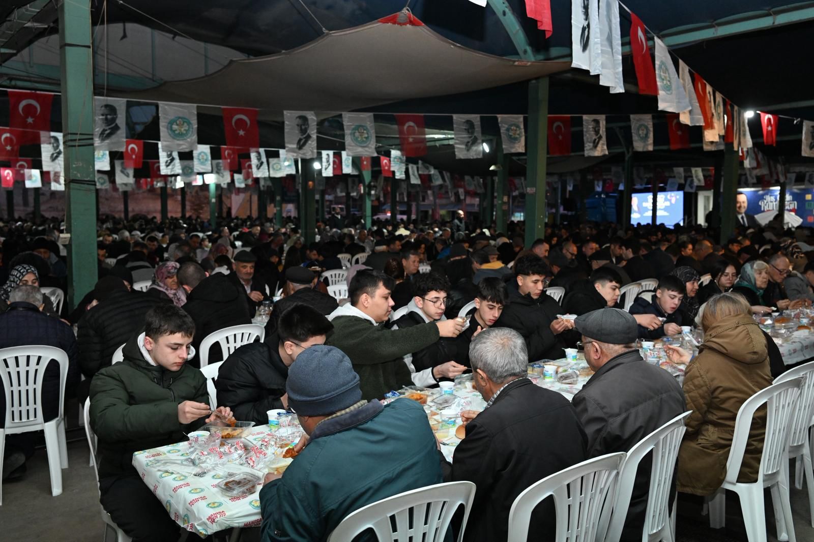 Manisa Büyükşehir Belediyesi, Ramazan ayının ruhuna uygun paylaşma ve dayanışma etkinliklerini Demirci ilçesine taşıdı. İlçe merkezinde kurulan dev iftar sofrası, yüzlerce vatandaşın aynı anda oruç açmasına vesile oldu. Manevi atmosferin ön planda olduğu programda, belediye yetkilileri ve ilçe protokolü vatandaşlarla omuz omuza iftar yaptı.