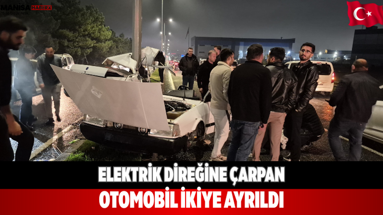 Tekirdağ’da Elektrik Direğine Çarpan Otomobil İkiye Ayrıldı