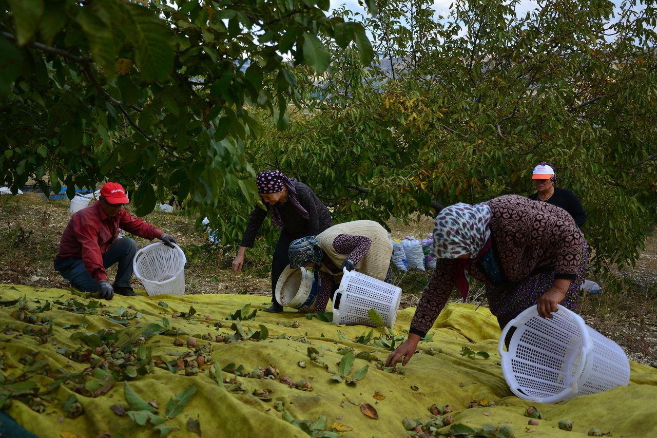 Ceviz hasadının Ekim ortasında başladığını belirten Sönmez, “Ağaç silkeleme makinesiyle cevizleri örtülerin üzerine döküyoruz. Kabuğundan ayırdıktan sonra güneşte kurutuyoruz. Zahmetli bir süreç ama emeğin karşılığını almak her şeye değer,” dedi.