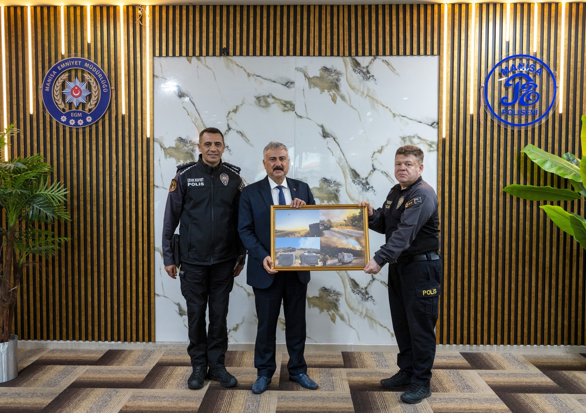 Manisa İl Emniyet Müdürü Fahri Aktaş, 2025 yaz aylarında Manisa il merkezi, ilçeleri ve Çanakkale’de meydana gelen orman yangınlarının söndürülmesinde aktif görev alan Çevik Kuvvet Şube Müdürlüğü TOMA operatörleri ile bir araya geldi.