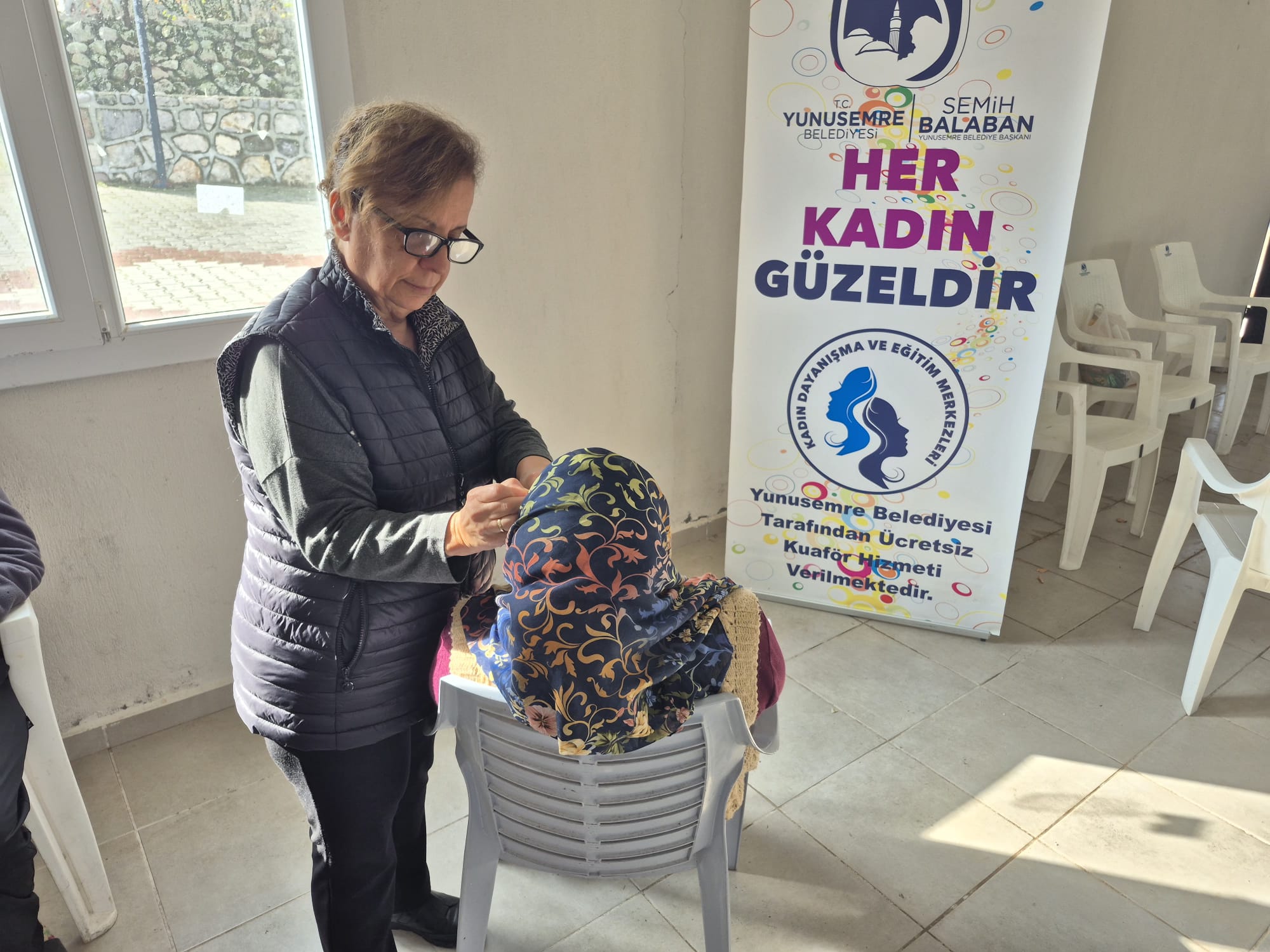 Davutlar Mahallesi’nde gerçekleştirilen etkinlikte, kadınların yüzündeki tebessüm projeye anlam kattı. Gün boyu süren kuaförlük hizmetleri, hem kişisel bakım imkânı sundu hem de kadınlar arasında dayanışma ruhunu güçlendirdi.