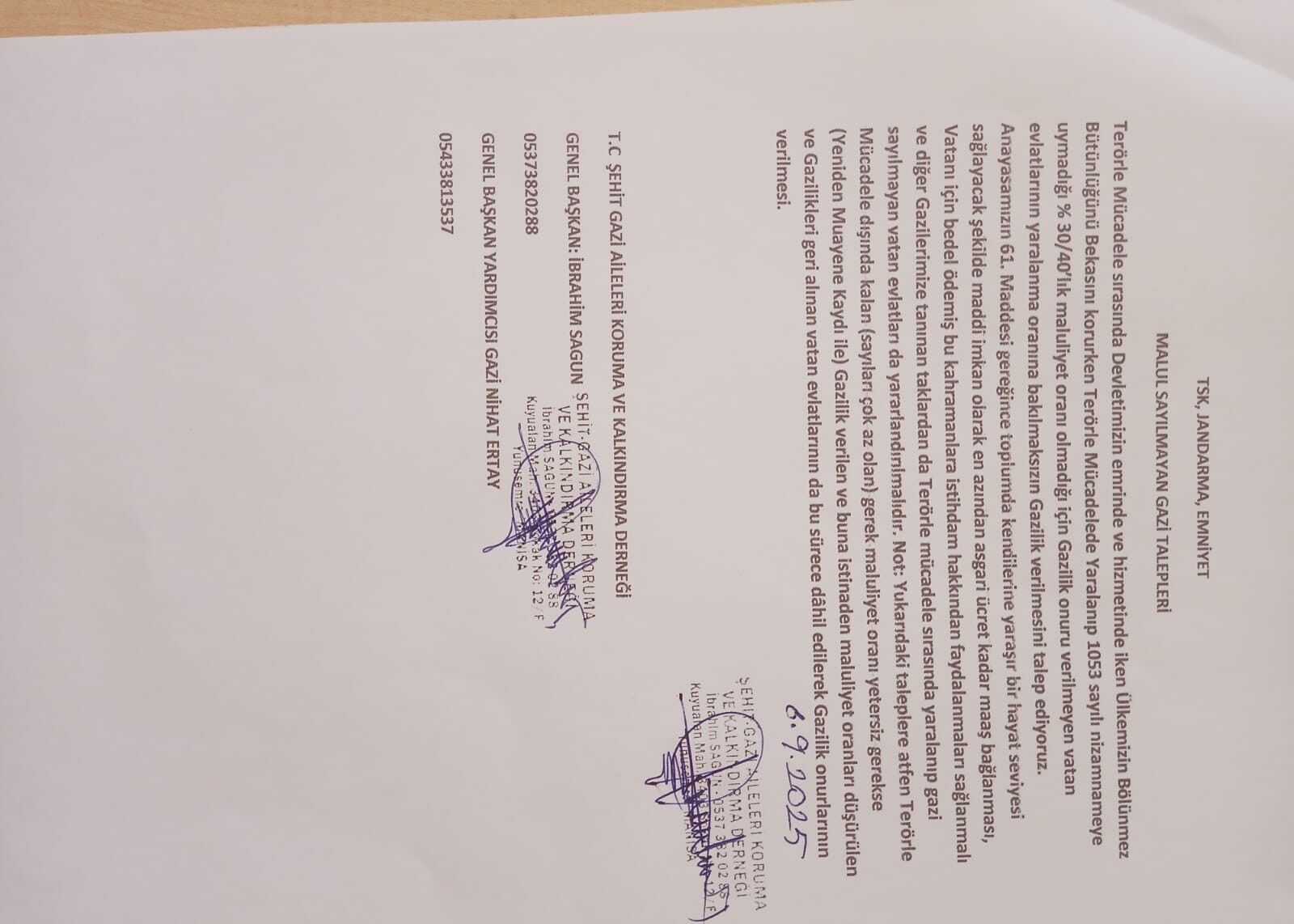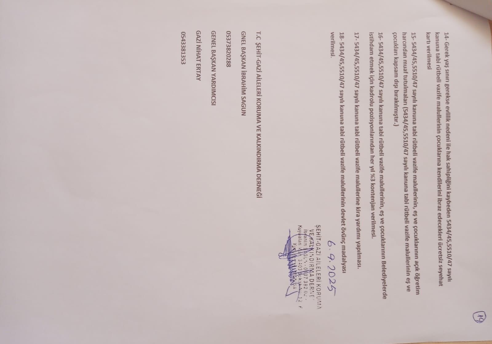 Şehit Gazi Aileleri Koruma ve Kalkındırma Derneği Genel Başkanı İbrâhim Sagun, 25 yaş üstü şehit ve gazi çocuklarını kapsayan yeni düzenlemeye ilişkin açıklamada bulundu. Sağun, dernek tarafından verilen önergenin kabul gördüğünü belirterek yeni uygulamanın yürürlüğe girdiğini duyurdu.