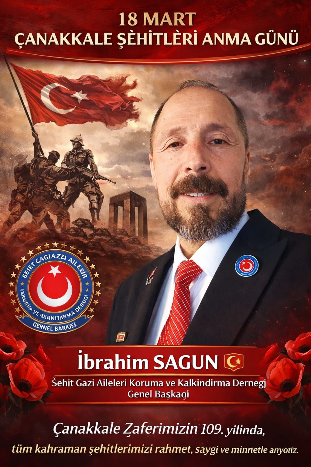 Şehit Gazi Aileleri Koruma ve Kalkındırma Derneği Genel Başkanı İbrahim Sagun, 18 Mart Çanakkale Şehitlerini Anma Günü dolayısıyla bir mesaj yayımladı.