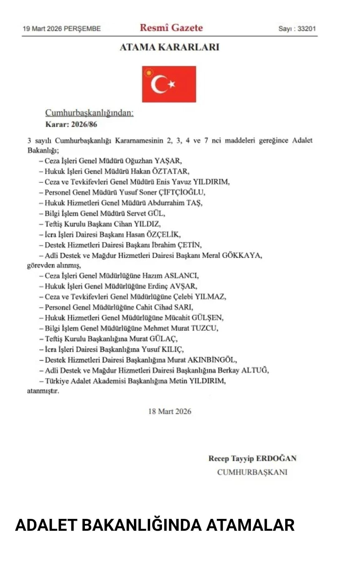 18 Mart 2026 tarihli atama kararları yalnızca Adalet Bakanlığı ile sınırlı kalmadı. Birçok bakanlık ve kamu kurumunda da yeni görevlendirmeler gerçekleştirildi.