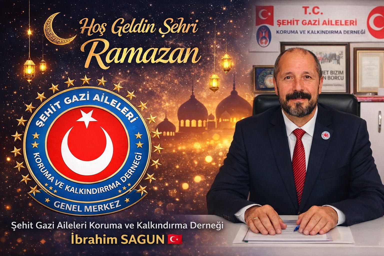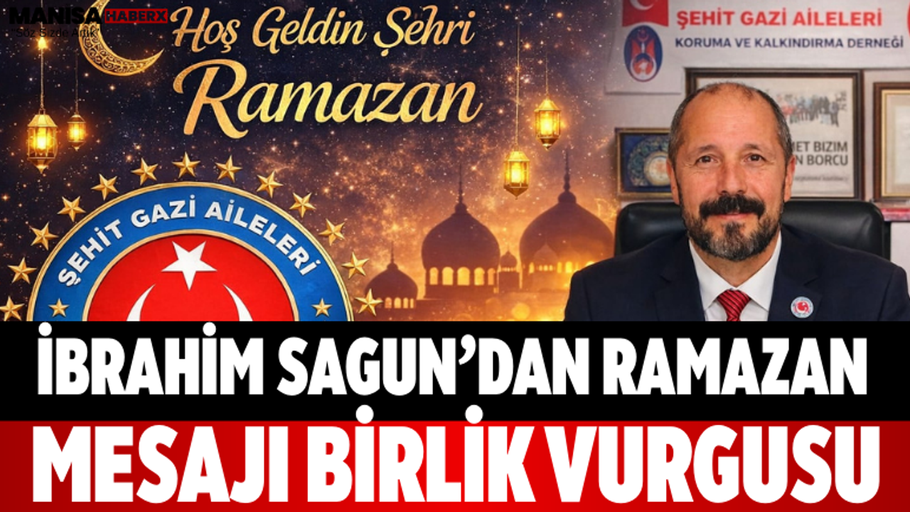 Manisa Şehit ve Gazi Aileleri Koruma ve Kalkındırma Derneği Genel Başkanı İbrahim Sagun, Ramazan ayı dolayısıyla yazılı bir açıklama yayımladı. Sagun, mesajında Ramazan ayının rahmet, mağfiret ve bereket ayı olduğuna dikkat çekti.