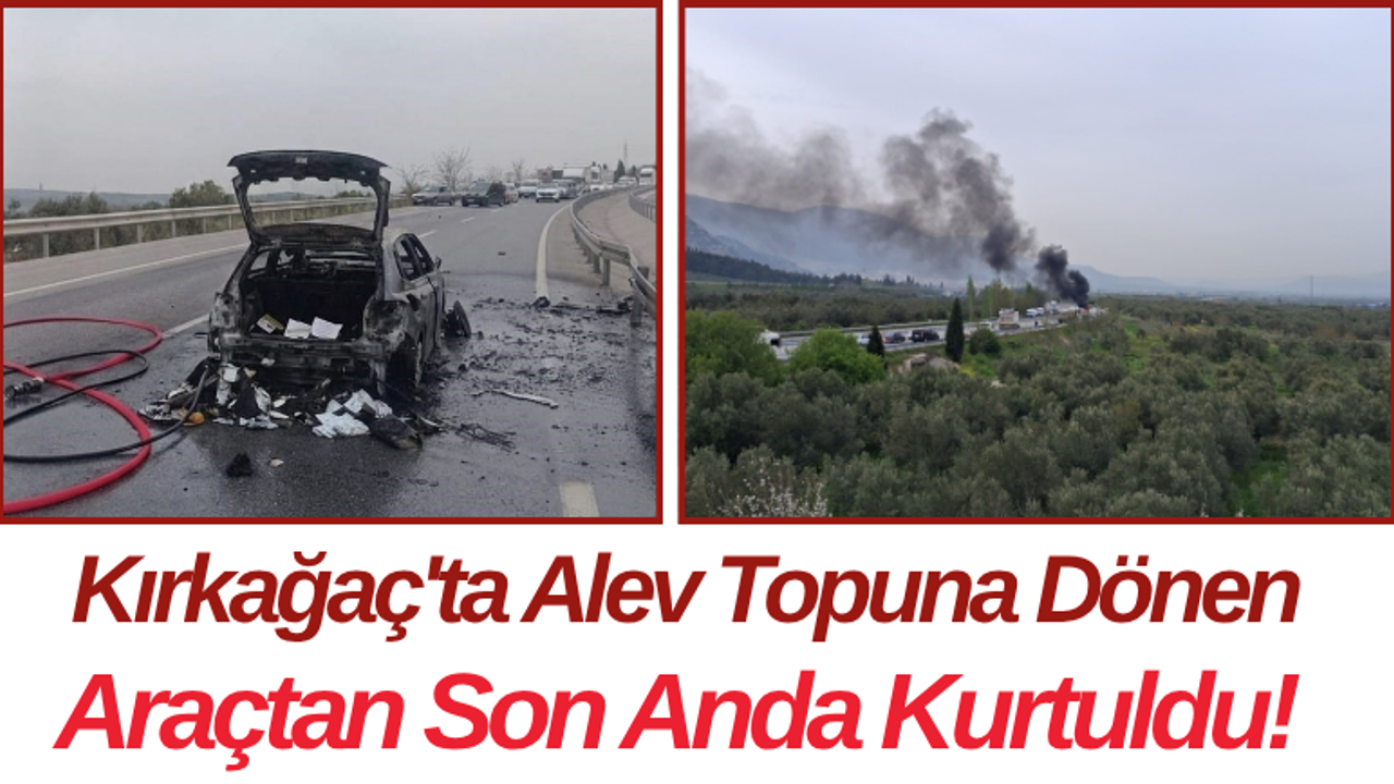 Manisa’nın Kırkağaç ilçesinde meydana gelen trafik kazasında bir otomobil çarpmanın ardından alev aldı. Olayda sürücü son anda araçtan çıkarak canını kurtardı.