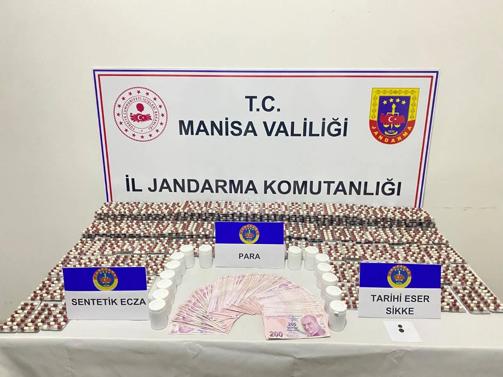 Manisa’nın Kırkağaç ilçesinde jandarma ekiplerinin takibi sonucunda gerçekleştirilen operasyonda, binlerce sentetik ecza ve tarihi sikkeler ele geçirildi. Olayla ilgili iki kişi gözaltına alındı.