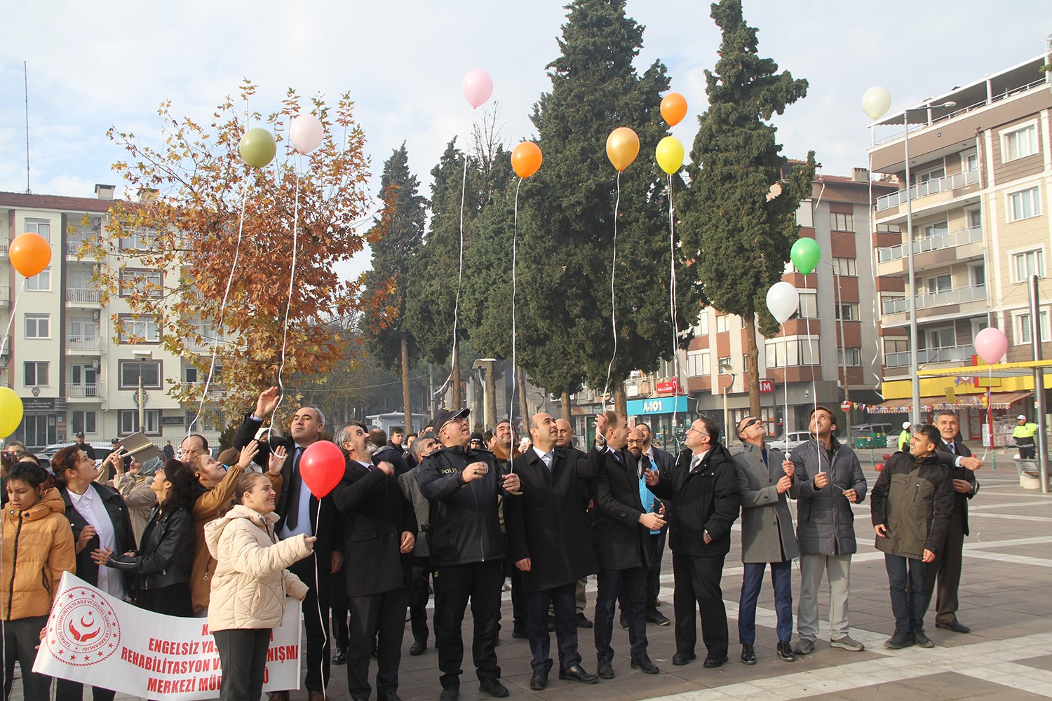 Kurumun çelenginin sunulmasının ardından engelli öğrenciler ve protokol üyeleri, rengârenk balonları gökyüzüne bırakarak farkındalık oluşturdu. Ardından Selim Sabahat Palanduz Anadolu Lisesi Bando Takımı eşliğinde ilçe merkezinde yürüyüş gerçekleştirildi.
