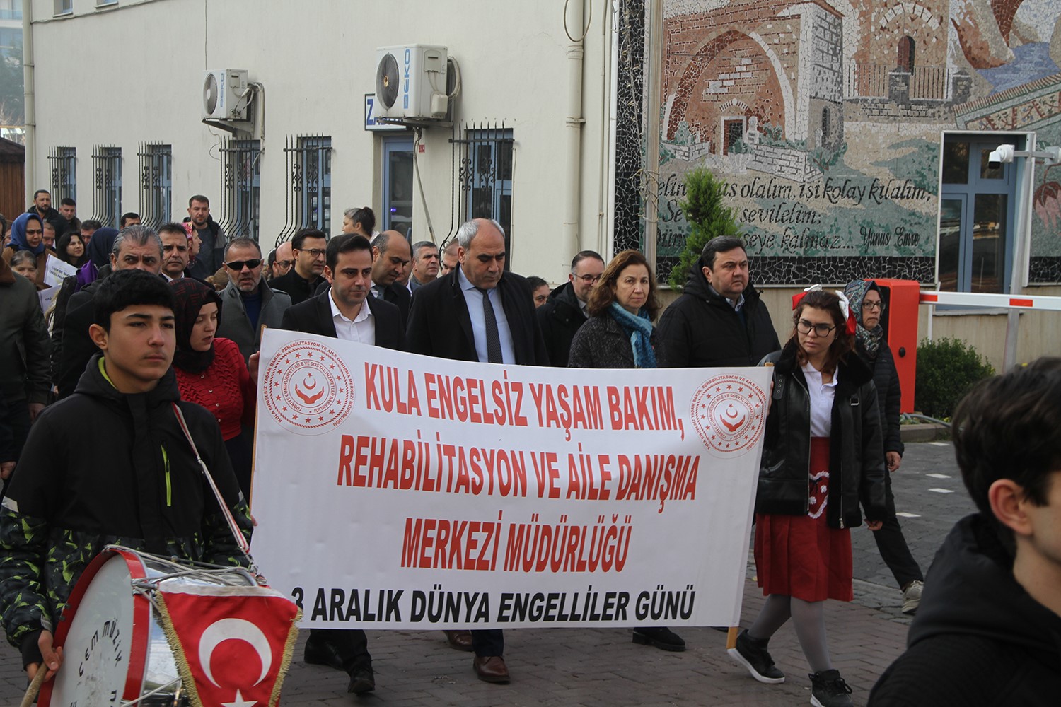 Kula Engelsiz Yaşam Bakım Rehabilitasyon ve Aile Danışma Merkezi, 3 Aralık Dünya Engelliler Günü dolayısıyla özel bir kutlama programı düzenledi. Program, Kent Meydanı’nda bulunan Atatürk Anıtı’na çelenk sunulmasıyla başladı.