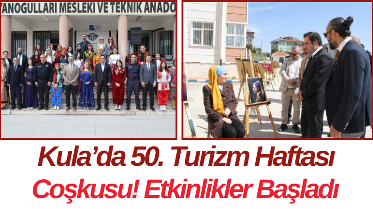 Manisa’nın Kula ilçesinde 50’nci Turizm Haftası kutlamaları başladı. Germiyanoğulları Mesleki ve Teknik Anadolu Lisesi tarafından hazırlanan etkinlikler okul bahçesinde gerçekleştirildi.