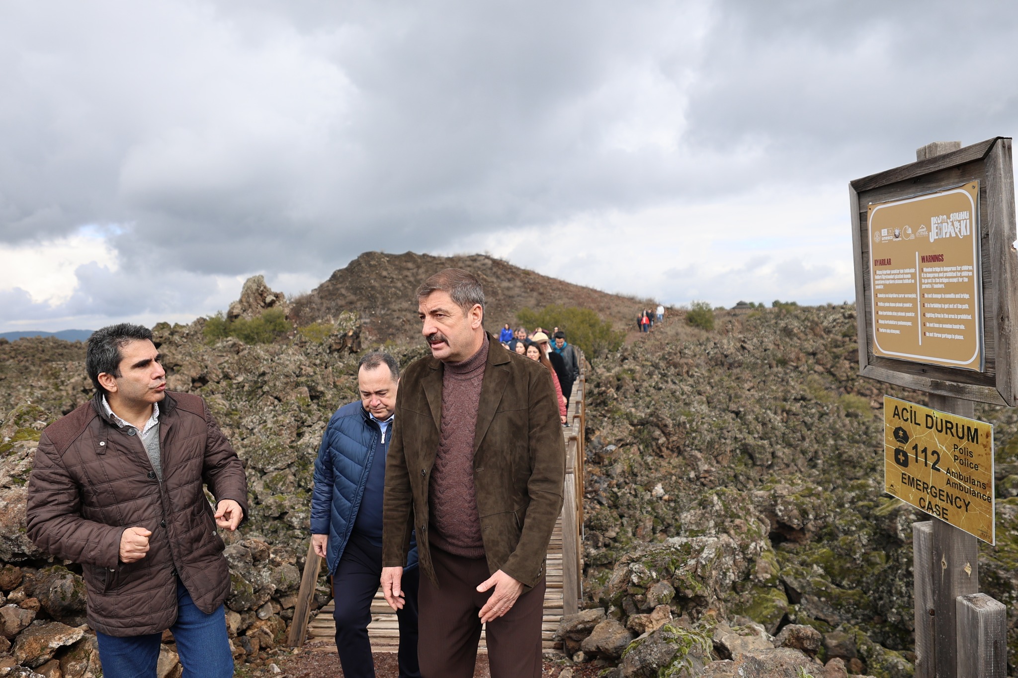 Lav akıntıları, bazalt sütunları ve volkan konileriyle dikkat çeken jeopark alanında katılımcılara bölgenin jeolojik oluşum süreci hakkında bilgi verildi. Kula’yı ilk kez ziyaret eden heyet üyelerinin, bölgenin doğal yapısına ilgi gösterdiği bildirildi.
