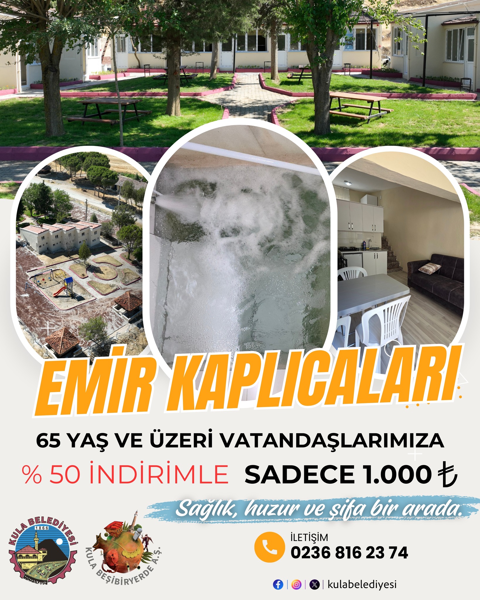 Manisa’nın Kula ilçesinde, 65 yaş ve üzeri vatandaşlara yönelik yeni bir sosyal destek uygulaması hayata geçirildi. Kula Belediyesi tarafından başlatılan uygulama kapsamında, ilçede hizmet veren Emir Kaplıcaları’nda konaklama ücretlerinde yüzde 50 indirim uygulanacağı açıklandı.