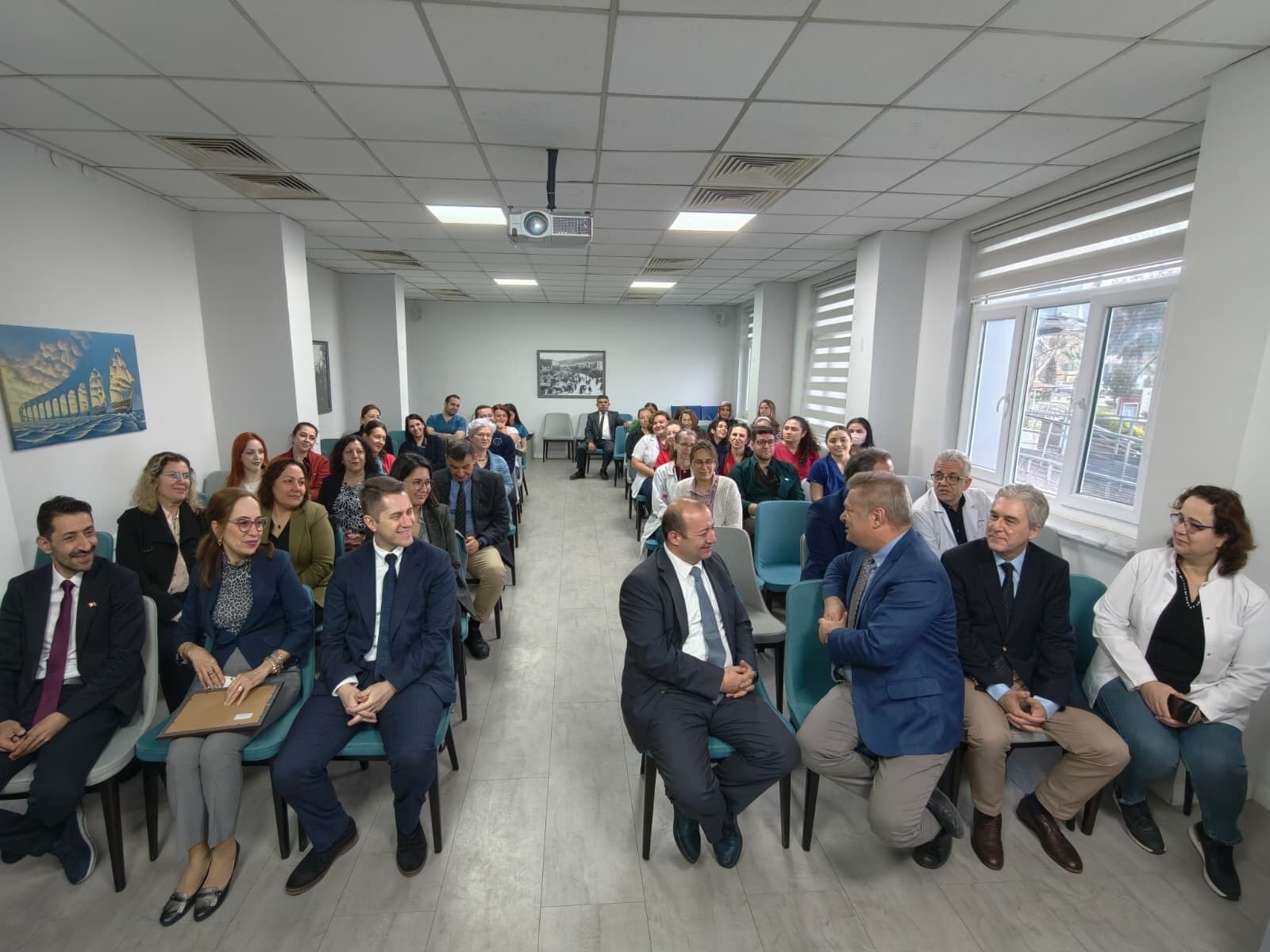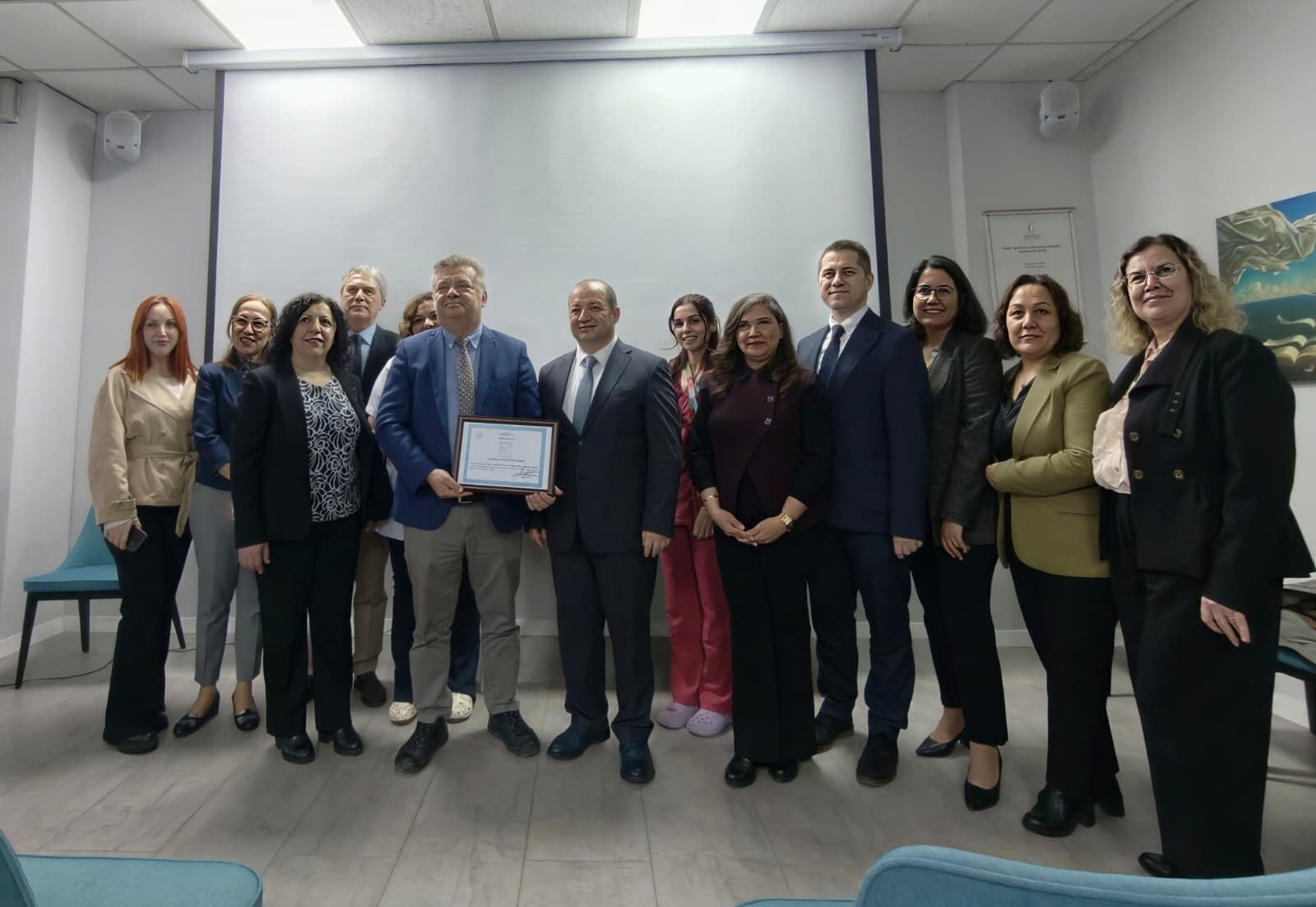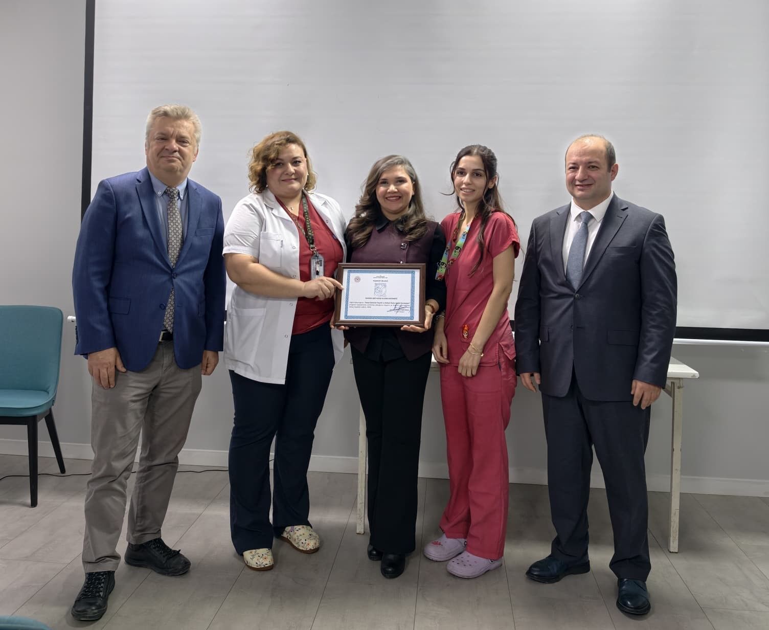 Manisa CBÜ Hafsa Sultan Hastanesi Başhekimlik Toplantı Salonu’nda gerçekleştirilen törende, Manisa İl Sağlık Müdürü Uzm. Dr. Fatih Zeren, Başhekim Prof. Dr. İsmet Topçu, müdür yardımcıları ve hastane personeli yer aldı.