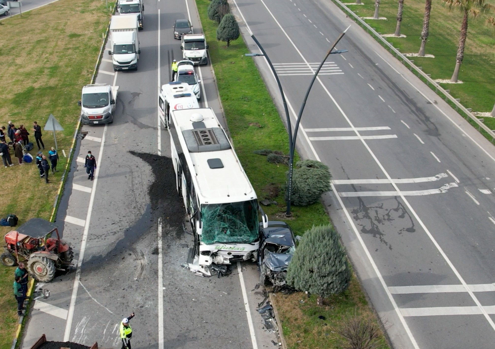 Çarpmanın etkisiyle savrulan otomobil, kontrolünü kaybederek sol şeride geçti. Bu sırada sol şeritte ilerleyen ve İ.E. (52) yönetimindeki 10 HF 160 plakalı Uludağ firmasına ait İzmir-İstanbul seferini yapan yolcu otobüsü, savrulan otomobile çarptı.