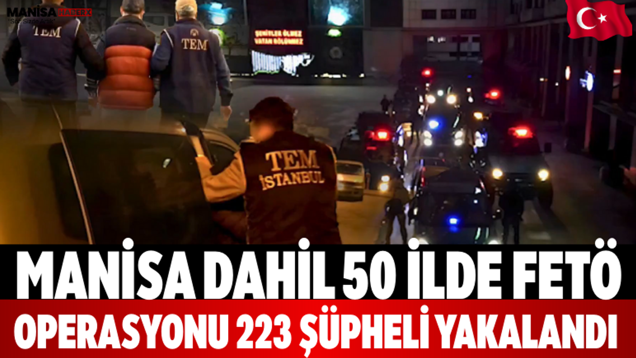 Fetullahçı Terör Örgütü’ne (FETÖ) yönelik emniyet birimleri tarafından son 20 gündür sürdürülen operasyonlarda toplam 223 şüpheli yakalandı. Manisa’nın da aralarında bulunduğu 50 ilde eş zamanlı olarak gerçekleştirilen operasyonlarda, örgütün farklı yapılanmaları içinde faaliyet yürüttüğü belirlenen şahıslar gözaltına alındı.