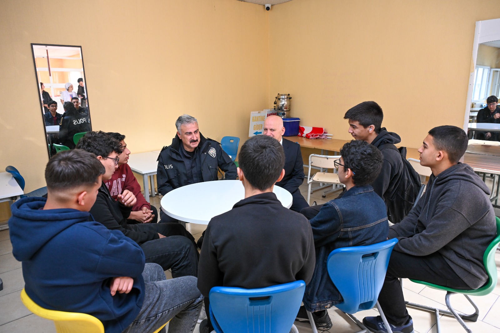 Her okulda güvenli ve huzurlu bir eğitim ortamı için yürütülen çalışmaları inceleyen İl Emniyet Müdürü, okul çevrelerinde alınan güvenlik önlemlerini de denetledi.