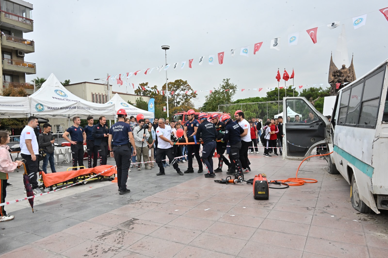 Etkinliklerin en dikkat çekici bölümlerinden biri, itfaiye ekipleri tarafından gerçekleştirilen kurtarma tatbikatı oldu. Senaryoya göre trafik kazası geçiren bir araçta sıkışan yaralı, ekiplerin hızlı müdahalesiyle çıkarıldı. Tatbikatı izleyen vatandaşlar, yaralı kurtarma sürecini adım adım takip etti. Araçtan çıkarılan yaralı, senaryoya uygun şekilde 112 Acil Sağlık ekiplerine teslim edildi.