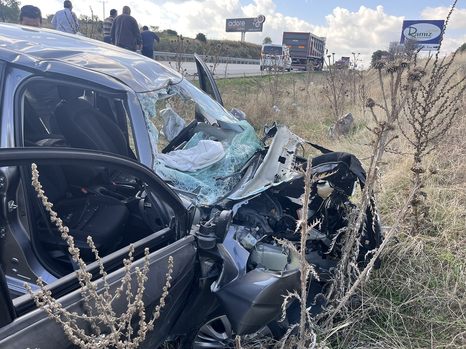 Kaza anına tanık olan vatandaşların ifadelerine göre, otomobil sürücüsü bir anda direksiyon hakimiyetini kaybetti. Araç kontrolden çıkarak önünde ilerleyen tıra hızla çarptı. Kazayı sürücü Adem Ç. yara almadan atlatırken, araçta yolcu olarak bulunan eşi Esma Ç. (58) yaralandı.