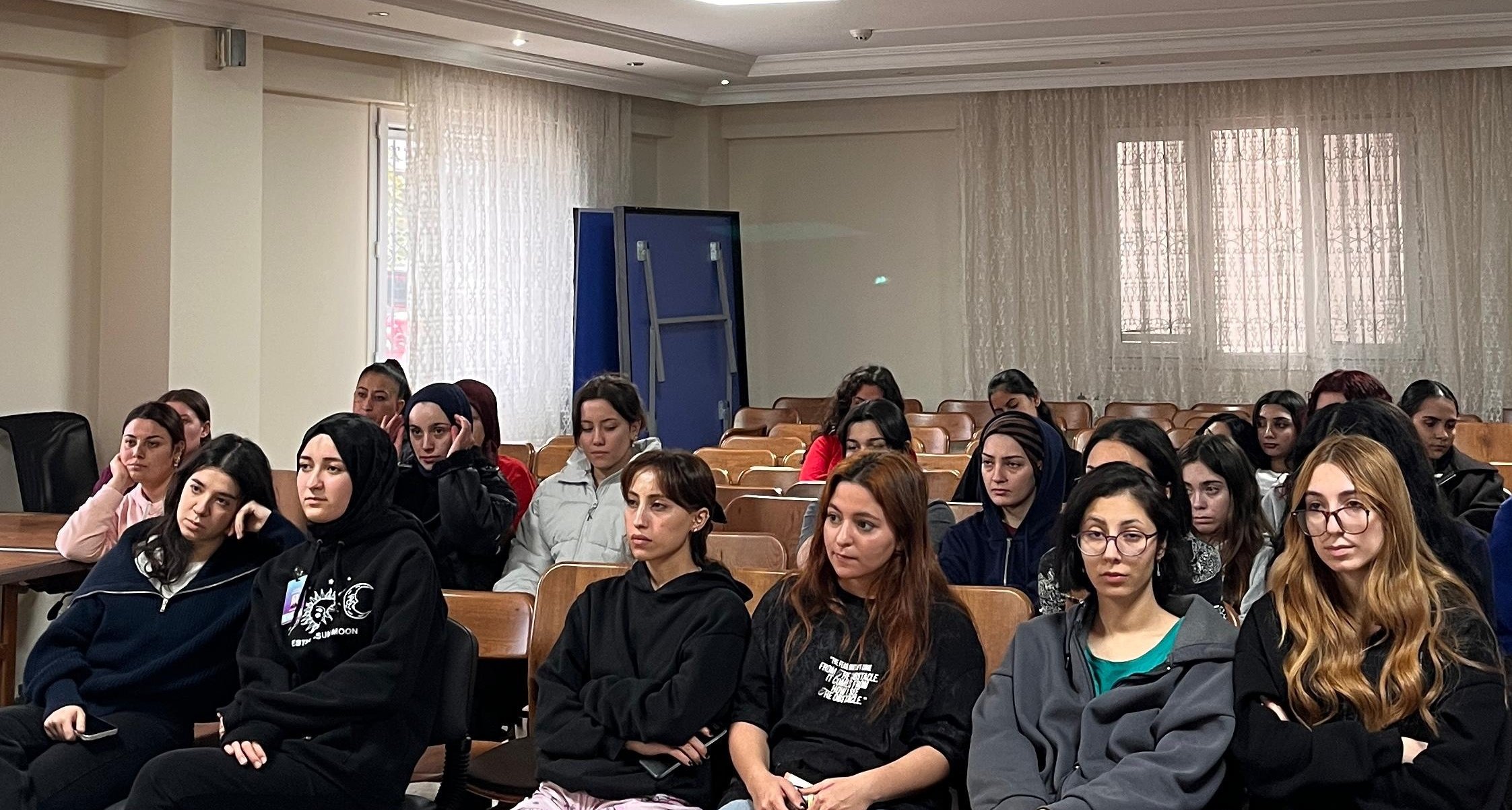 Muradiye Yurdu’nda düzenlenen programda Av. Sinem Sart Urgancı öğrencilerle bir araya gelerek kadın hakları üzerine bilgilendirme yaptı. Urgancı, hukuki hakların kullanımı, kadınların çalışma hayatındaki yeri ve girişimcilik olanakları hakkında öğrencilere detaylı bir sunum gerçekleştirdi.