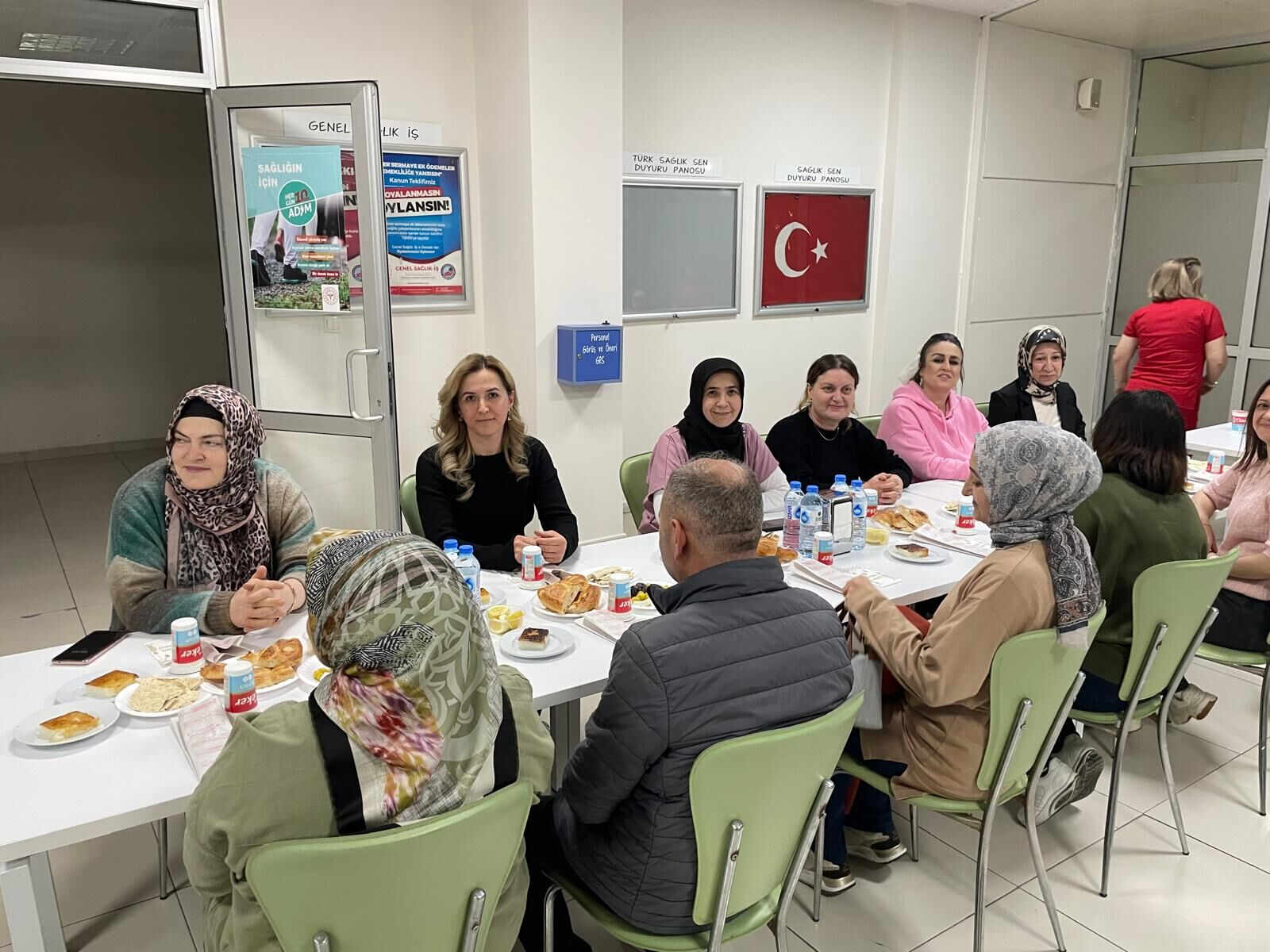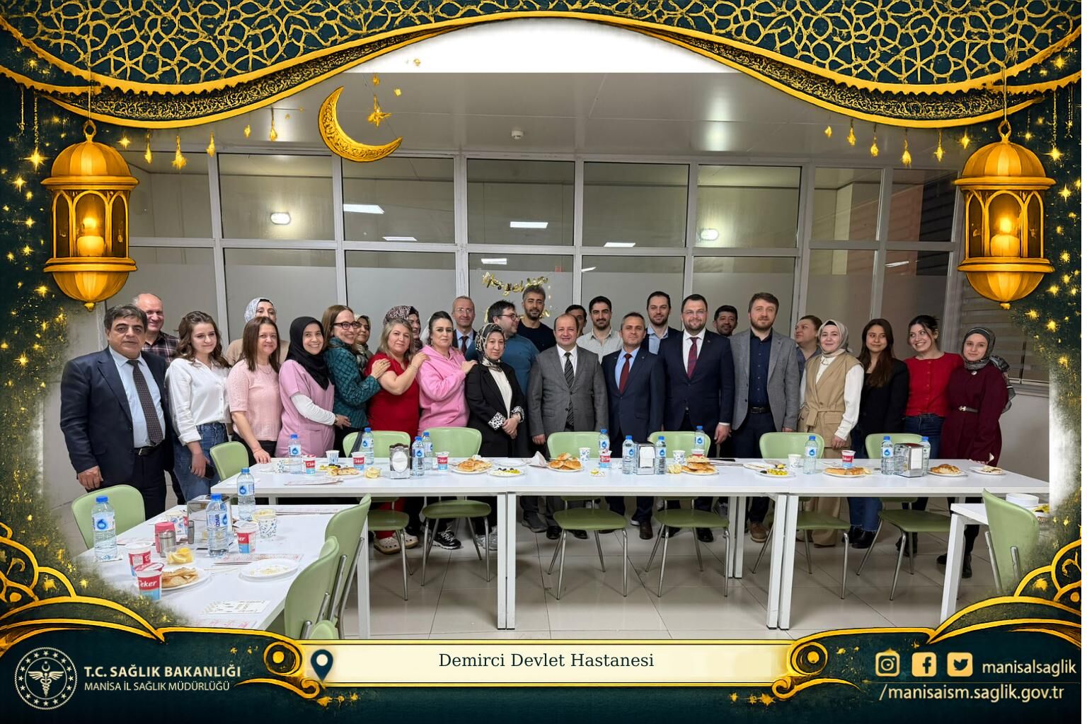 Günün sonunda Demirci Devlet Hastanesi’nde düzenlenen geleneksel iftar programında sağlık camiası bir araya geldi. Uzm. Dr. Mehmet Fatih Zeren’in katılımıyla gerçekleştirilen iftar organizasyonuna, hizmet başkanları, başkan yardımcıları, Demirci İlçe Sağlık Müdürlüğü çalışanları ve hastane personeli yoğun katılım sağladı. Ramazan ayının bereketini ve dayanışma ruhunu yansıtan programda, sağlık çalışanları aynı sofrada buluşarak sohbet etme imkanı buldu.