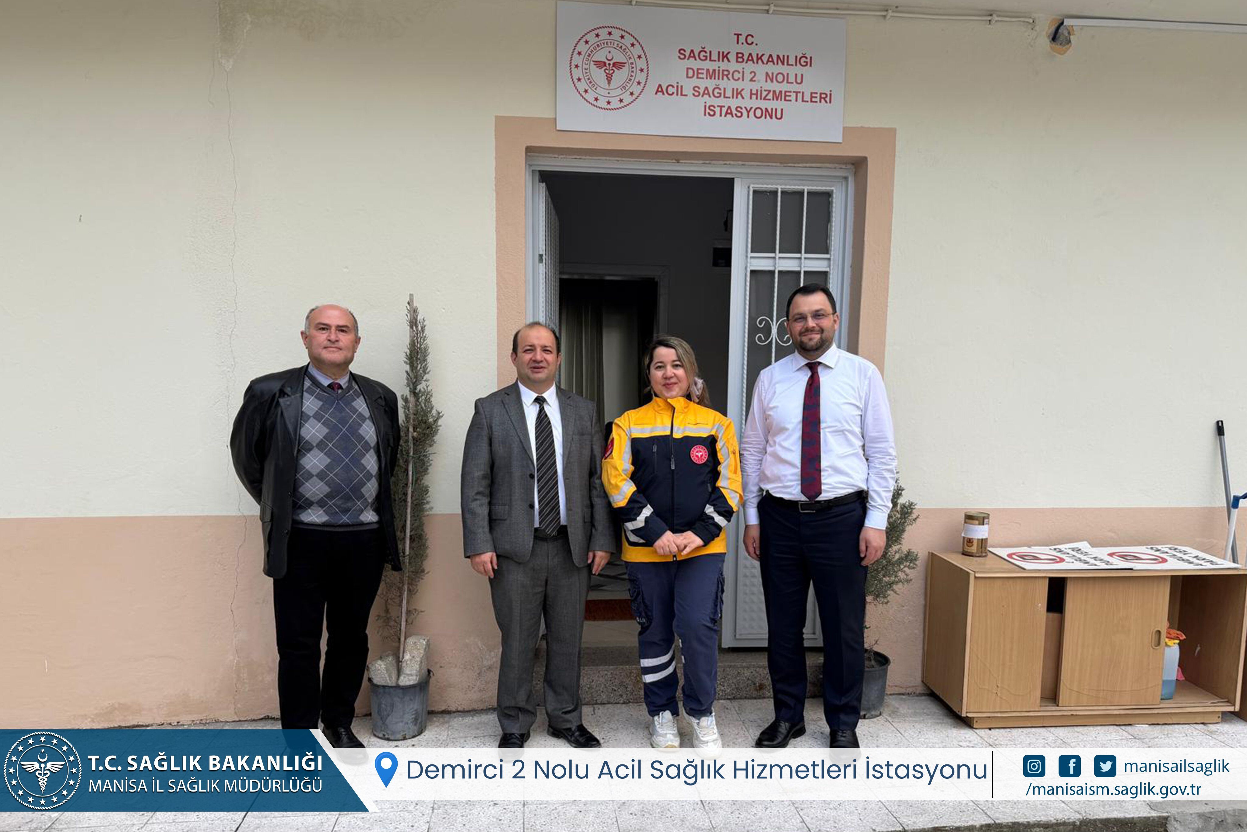 Manisa genelinde sağlık hizmetlerinin kalitesini artırmak ve yerinde incelemelerde bulunmak amacıyla sürdürülen saha ziyaretleri programı, Demirci ilçesiyle devam etti. Manisa İl Sağlık Müdürü Uzm. Dr. Mehmet Fatih Zeren, program kapsamında ilk olarak Demirci 1 ve 2 Nolu Acil Sağlık Hizmetleri İstasyonlarını ziyaret etti. İstasyonlarda görevli sağlık personeli ile bir araya gelen Zeren, acil müdahale süreçleri, ekipman yeterliliği ve vaka operasyonları hakkında detaylı bilgiler aldı.