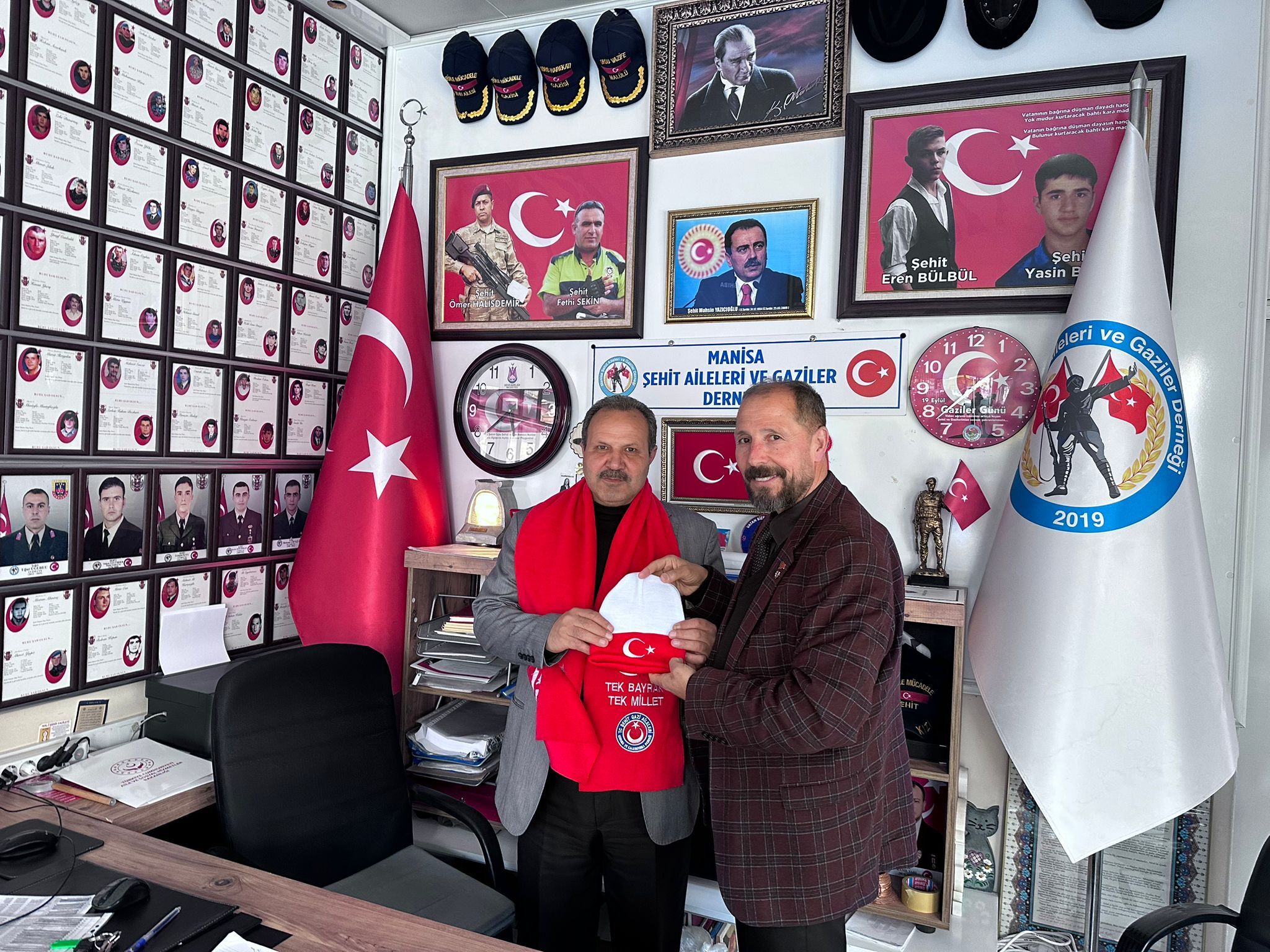 Manisa’da şehit yakınları ve gazilerin temsil noktalarından biri olan Manisa Şehit Aileleri ve Gaziler Derneği’nde bayrak değişimi sonrası anlamlı bir ziyaret gerçekleşti. Şehit Gazi Aileleri Koruma ve Kalkındırma Derneği Genel Başkanı İbrahim Sağun, başkanlık görevine seçilen Nuri Keser’i makamında ziyaret ederek yeni dönem için başarı dileklerini iletti.