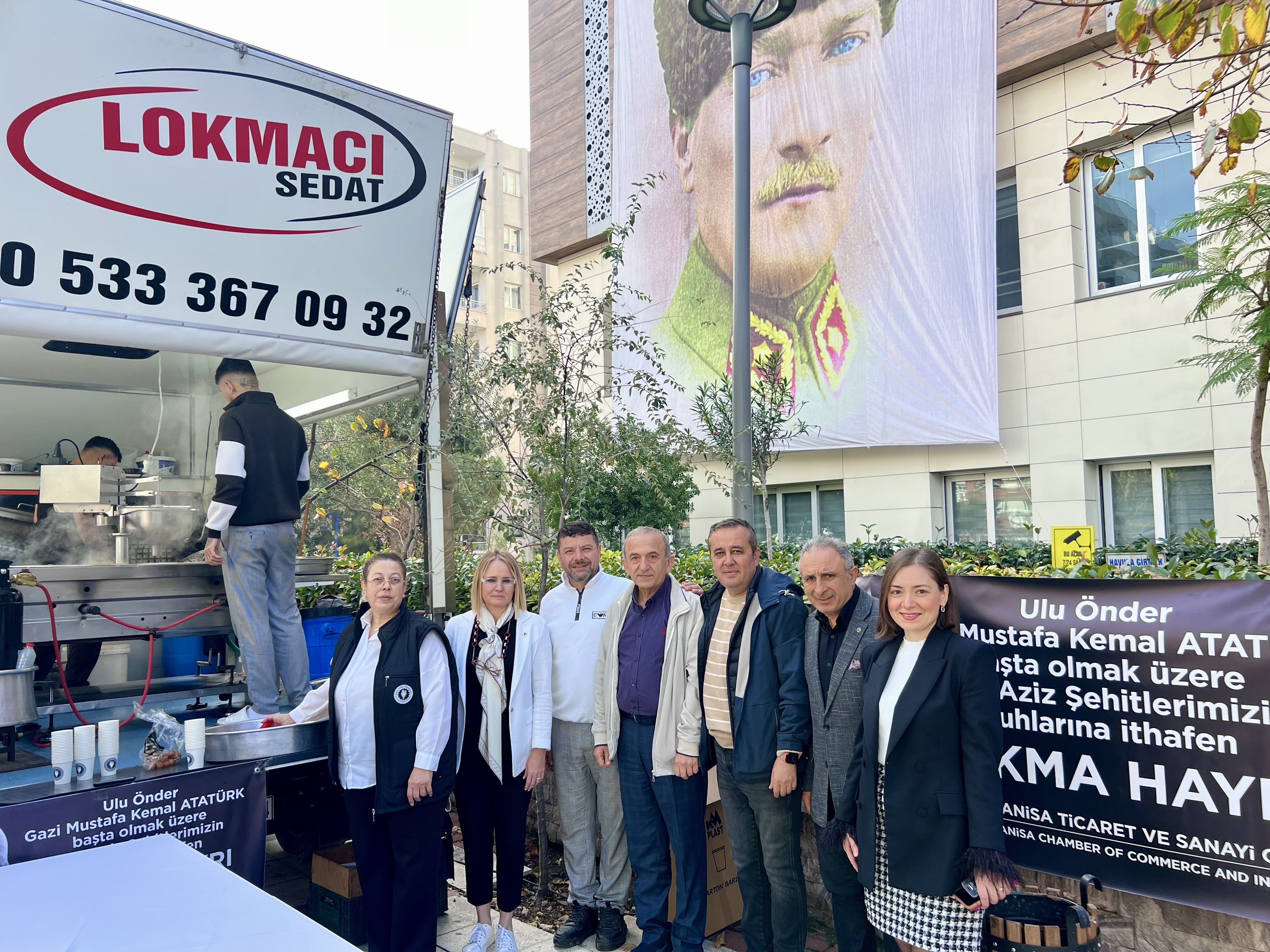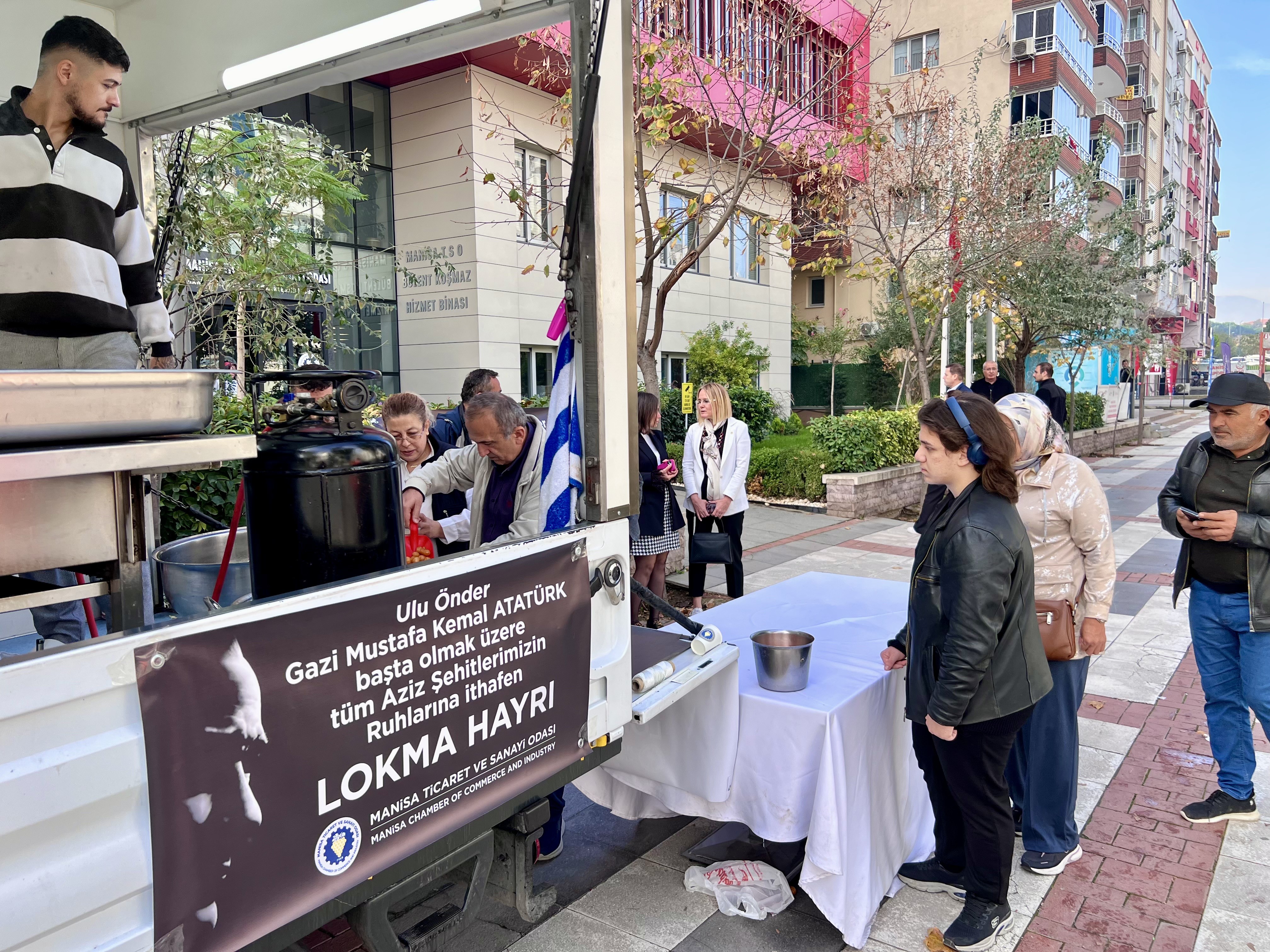 Törenin ardından Atatürk ve tüm şehitlerin ruhuna ithafen Manisa TSO önünde lokma hayrı yapıldı. Yönetim Kurulu üyeleri, vatandaşlara kendi elleriyle lokma ikram etti.