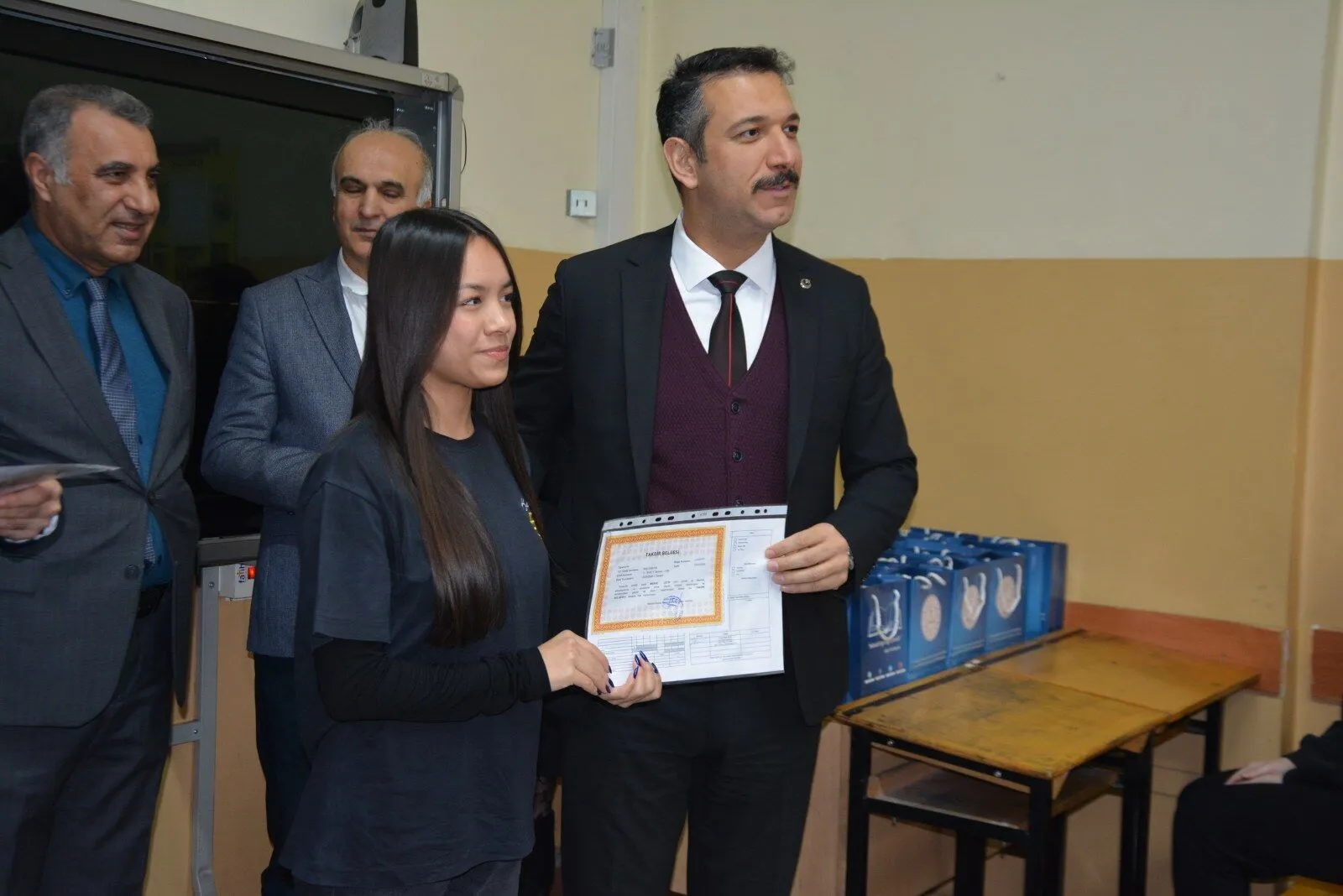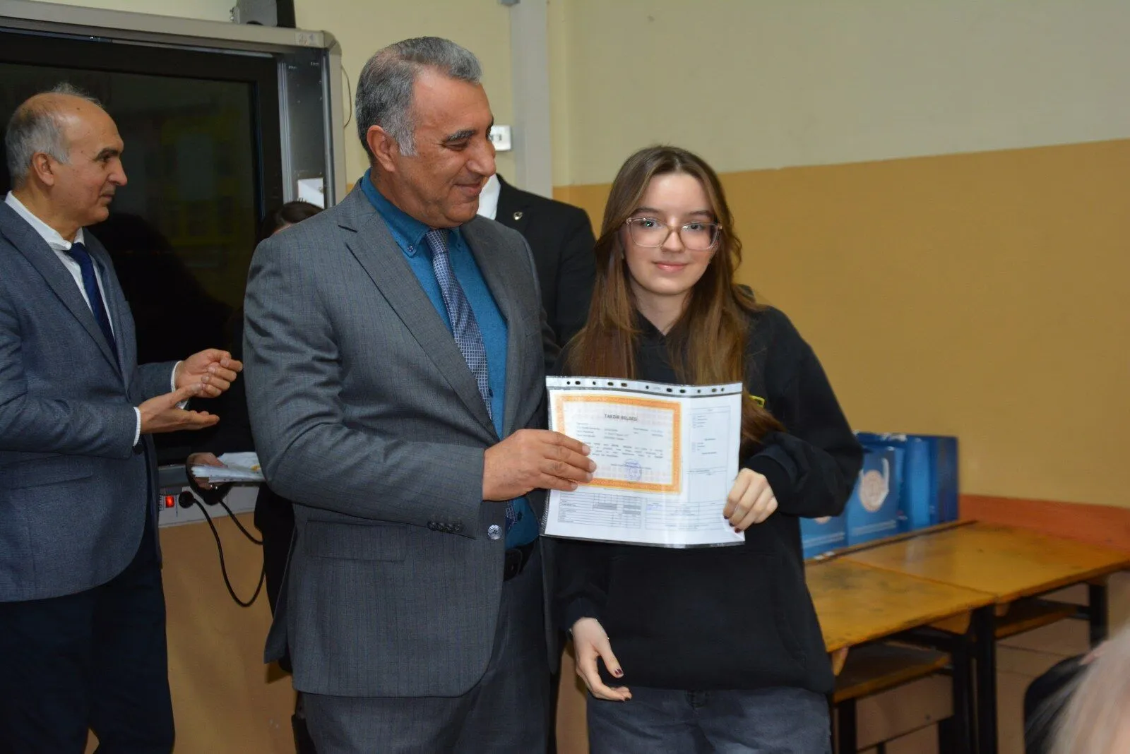 İl Milli Eğitim Müdürü Mehmet Uğurelli ise mesleklerin birer araç olduğunu vurgulayarak, “Hayatta asıl önemli olan yaşama amacınızı tespit edebilmek. Sizleri çok seviyoruz. İyi ki varsınız, iyi tatiller” dedi. Konuşmaların ardından protokol üyeleri sınıfları ziyaret ederek öğrencilere karnelerini verdi.