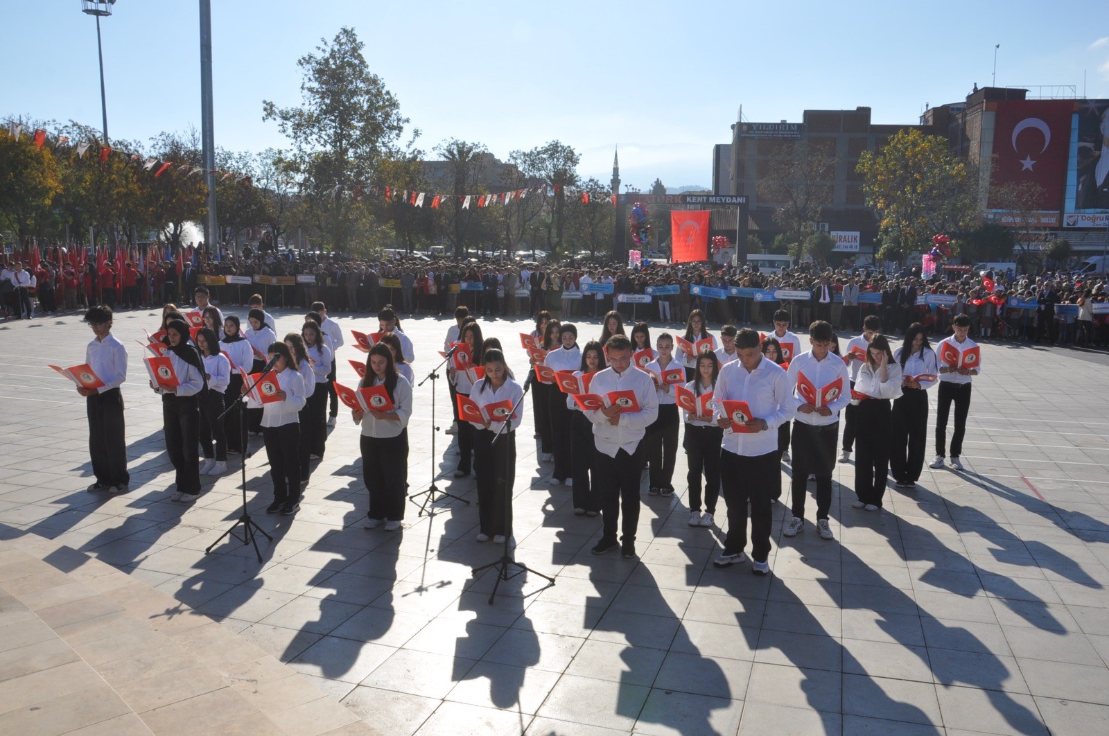 Saygı duruşu ve İstiklal Marşı’nın okunmasının ardından Kaymakam Altuntaş, Cumhuriyet’in değerlerini korumanın önemine değindi. Öğrenciler şiirler okudu, halk oyunları ve koreografiler sergilendi. Selim Sabahat Palanduz Anadolu Lisesi Müzik Öğretmeni Aslı Kök ve öğrencileri, günün anlam ve önemini anlatan eserleri seslendirdi. Tören, bando takımı eşliğinde yapılan geçiş töreniyle sona erdi.