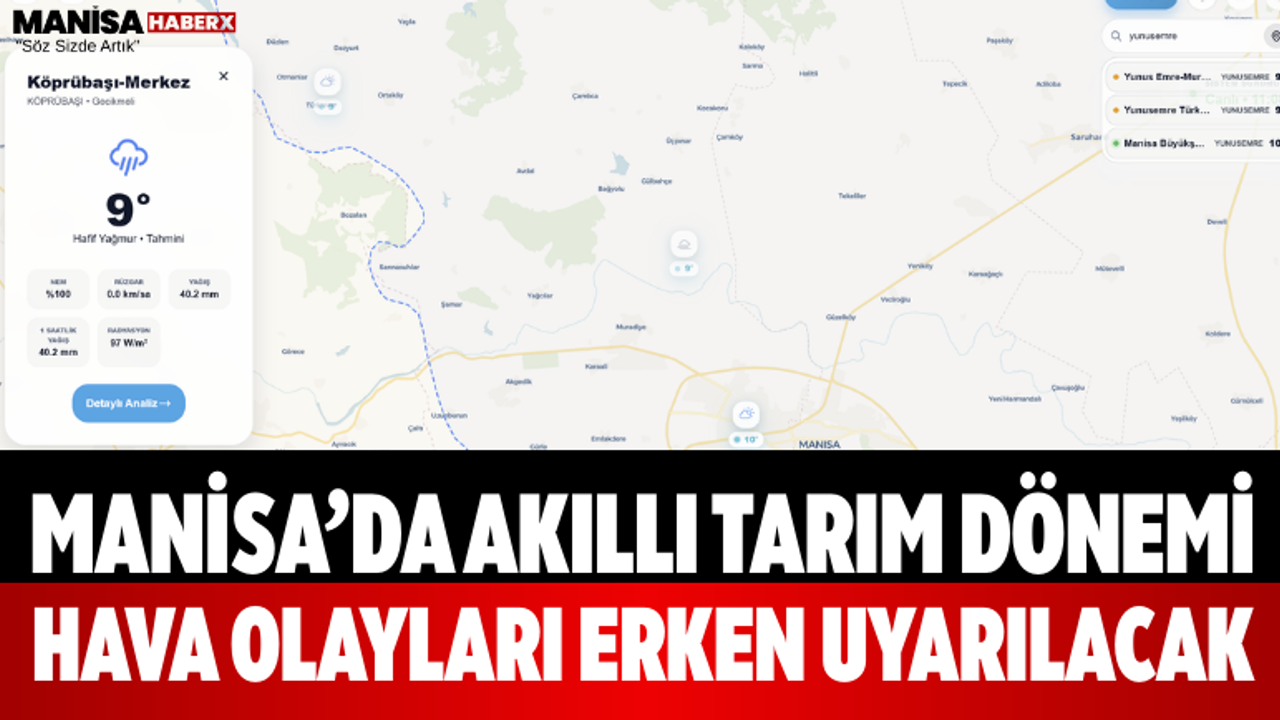 Manisa Büyükşehir Belediyesi, dijital belediyecilik vizyonu kapsamında tarım şehri Manisa için hayati önem taşıyan bir projeyi hayata geçirdi. "Hava Olayları Erken Uyarı ve Bölgesel Bilgi Sistemi" adı verilen yeni dijital platform, tarım üreticileri başta olmak üzere tüm vatandaşların meteorolojik risklere karşı önceden tedbir almasını sağlamayı hedefliyor. İl genelindeki verileri tek bir merkezde toplayan sistem, özellikle don, şiddetli yağış ve fırtına gibi üretimi doğrudan etkileyen olayları anlık olarak kullanıcılarına bildiriyor.