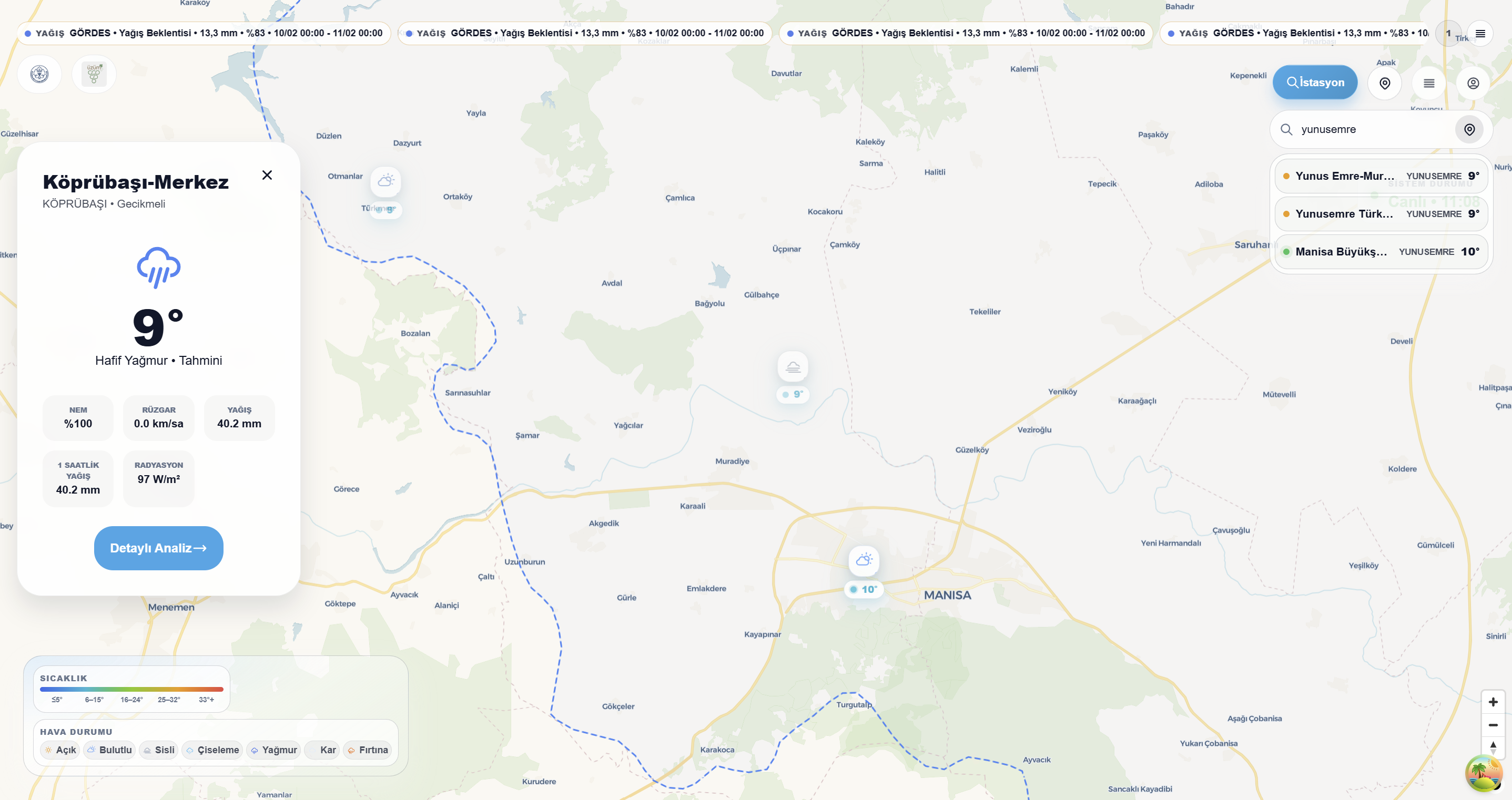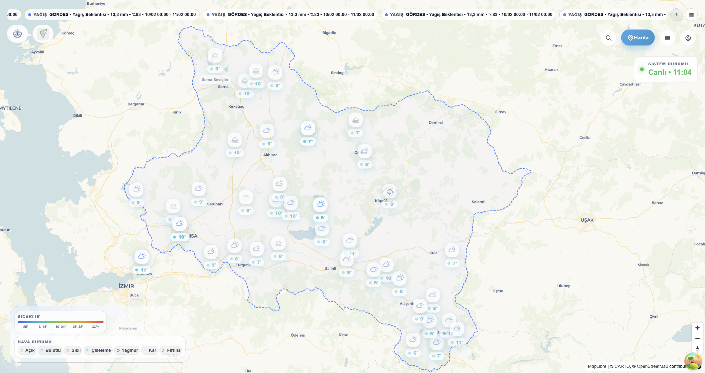 Manisa Büyükşehir Belediyesi’nin veri altyapısı, sahadan gelen istasyon ölçümleri ile tahmin verilerini entegre bir şekilde işliyor. Bu sayede kullanıcılar hem mevcut durumu hem de yaklaşan meteorolojik riskleri net bir şekilde görebiliyor. Dijital dönüşümün bir parçası olan bu sistem, kamu hizmetlerinin teknolojiyle harmanlanarak doğrudan vatandaşa ulaştırılmasının en güncel örneği olarak değerlendiriliyor.