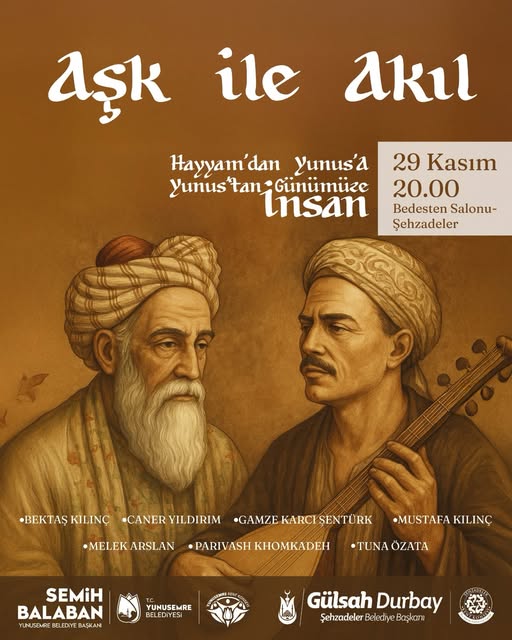 Etkinlikte, Hayyam’dan Yunus Emre’ye uzanan geniş bir düşünce dünyası ele alınacak. Toplumun tarihsel hafızasında önemli bir yere sahip olan bu iki isim üzerinden aşk, akıl, hikmet, insan sevgisi ve yaşam felsefesi gibi konular değerlendirilecek. Programın, Manisa’nın kültürel hayatına katkı sunması ve özellikle genç kuşakların düşünsel gelişimine destek olması amaçlanıyor.