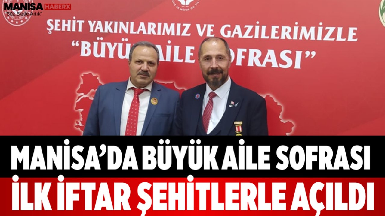 Manisa Aile ve Sosyal Hizmetler İl Müdürlüğü tarafından Ramazan ayının ilk gününde şehit yakınları ve gaziler için iftar programı düzenlendi. “Büyük Aile Sofrası” adıyla gerçekleştirilen organizasyonda, şehit aileleri ve gaziler aynı sofrada bir araya geldi.