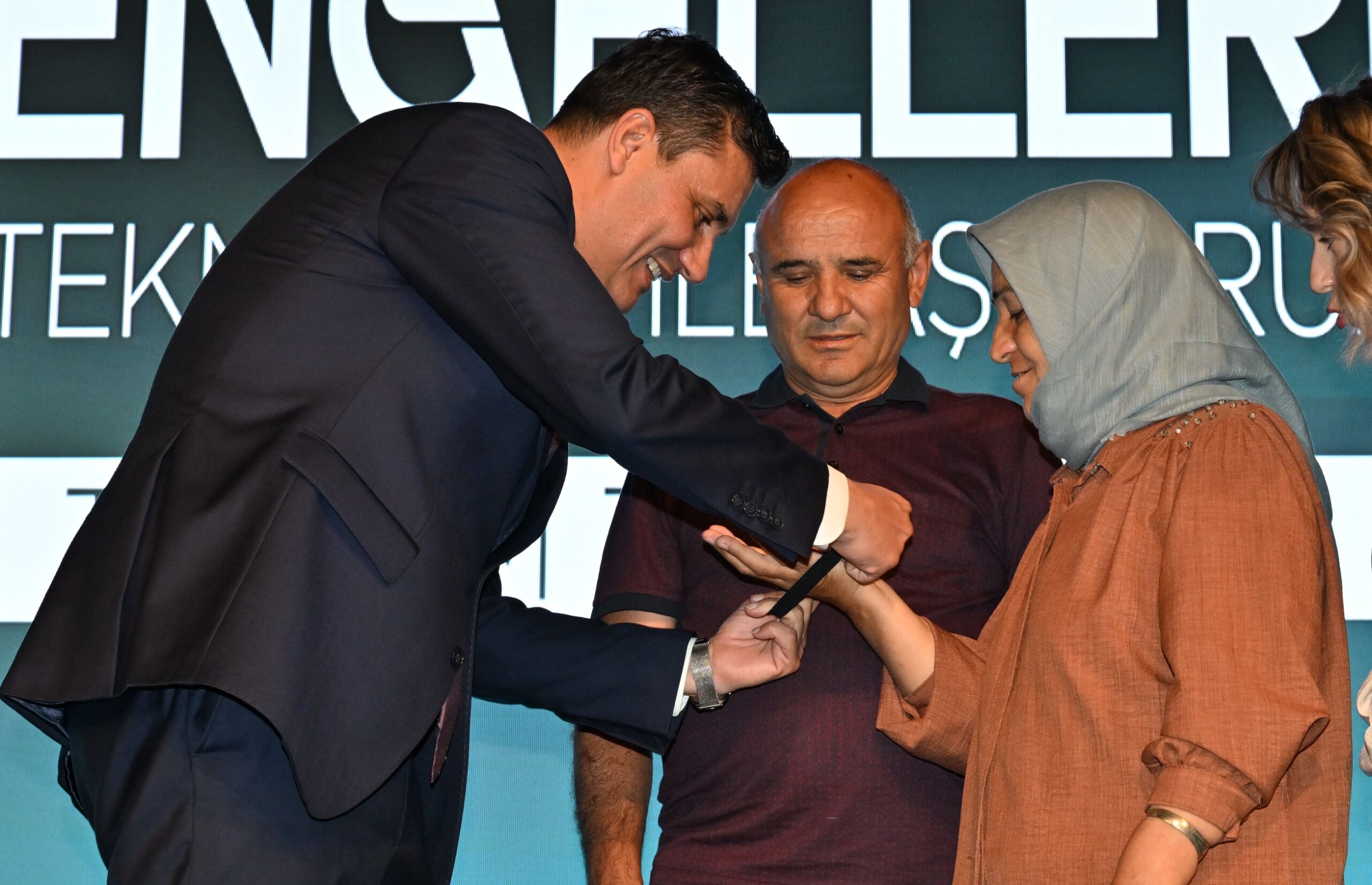 Büyükşehir Belediye Başkanı Ferdi Zeyrek’in konuşmasının ardından tanıtımı yapılan Alzheimer hastalarına ve kaybolma riski taşıyan engelli bireylere verilecek bileklerin dağıtımı yapıldı. Alzheimer hastası Sultan Eşbağ’ın ailesine bilekliği teslim eden Başkan Zeyrek, “Bu bileklik sayesinde gün boyu ailesi tarafından adım adım izleniyor olacak. Sultan Teyzem, tabi önce Allah’a, sonra ailesine, sonra da Manisa Büyükşehir Belediyesi’ne emanet” diye konuştu.