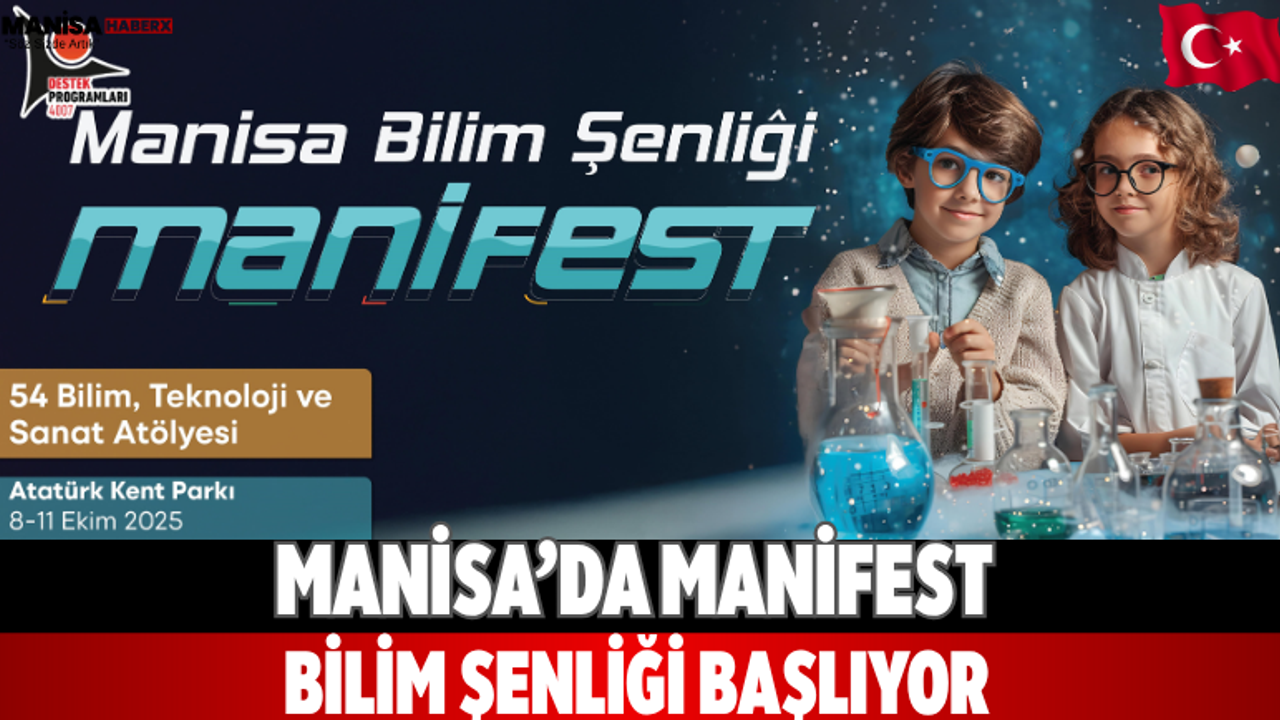 Manisa’da bilime ve teknolojiye ilgi duyan çocuklar ile gençleri buluşturacak MANİFEST Bilim Şenliği, 8-11 Ekim 2025 tarihleri arasında Atatürk Kent Parkı’nda gerçekleştirilecek.