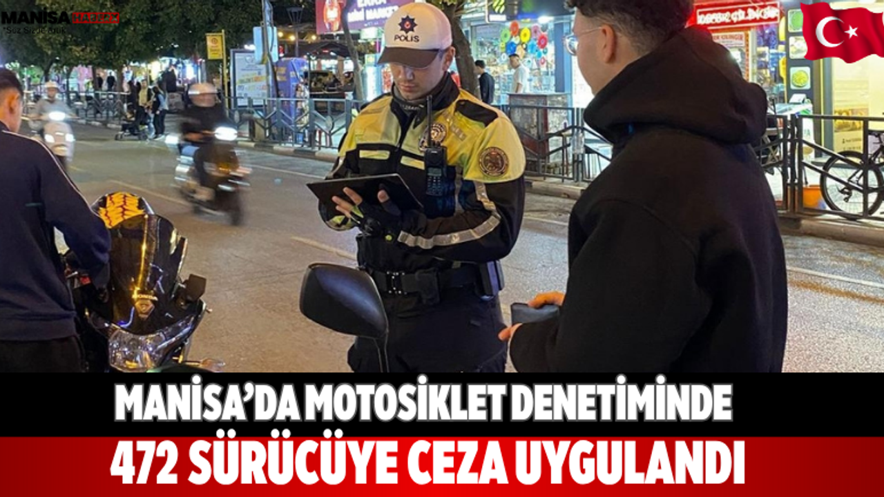 Manisa il genelinde polis ekipleri tarafından motosiklet sürücülerine yönelik yapılan denetimlerde 472 araç ve sürücüsüne idari para cezası uygulandı, 17 araç trafikten men edildi. Denetimler, yaya yolu ve kaldırımları kullanan motosikletlerin tespit edilmesi amacıyla gerçekleştirildi.