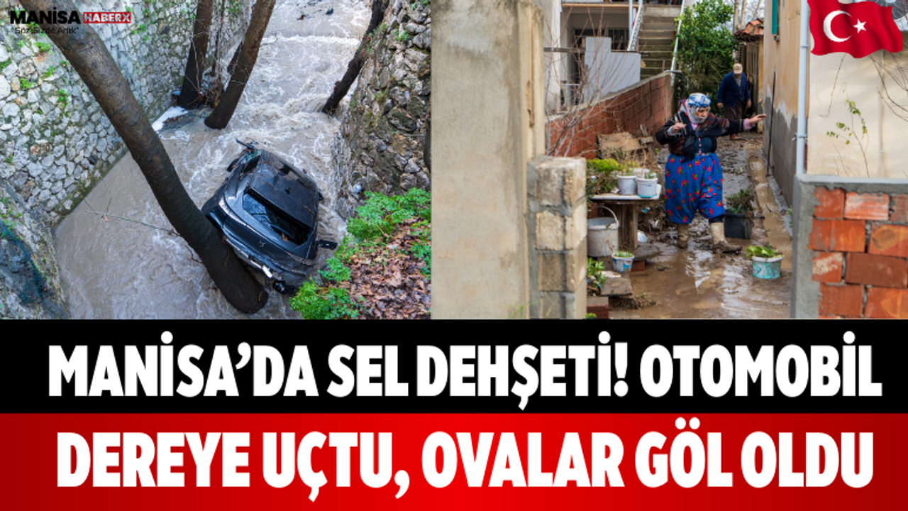 Spil Dağı eteklerinden gelen kuvvetli sel suları, dere yatağındaki debiyi kısa sürede artırdı. Dere kenarında park halinde bulunan bir otomobil, yükselen su seviyesiyle birlikte akıntıya kapılarak dere yatağına sürüklendi.