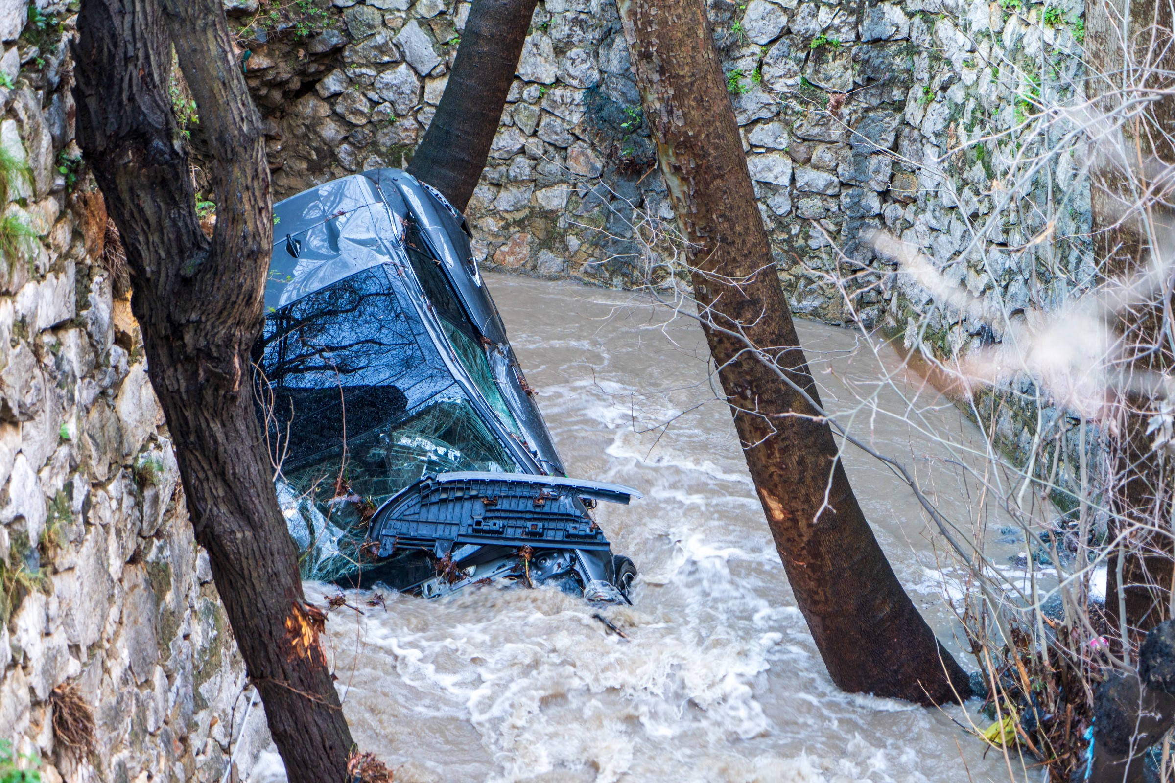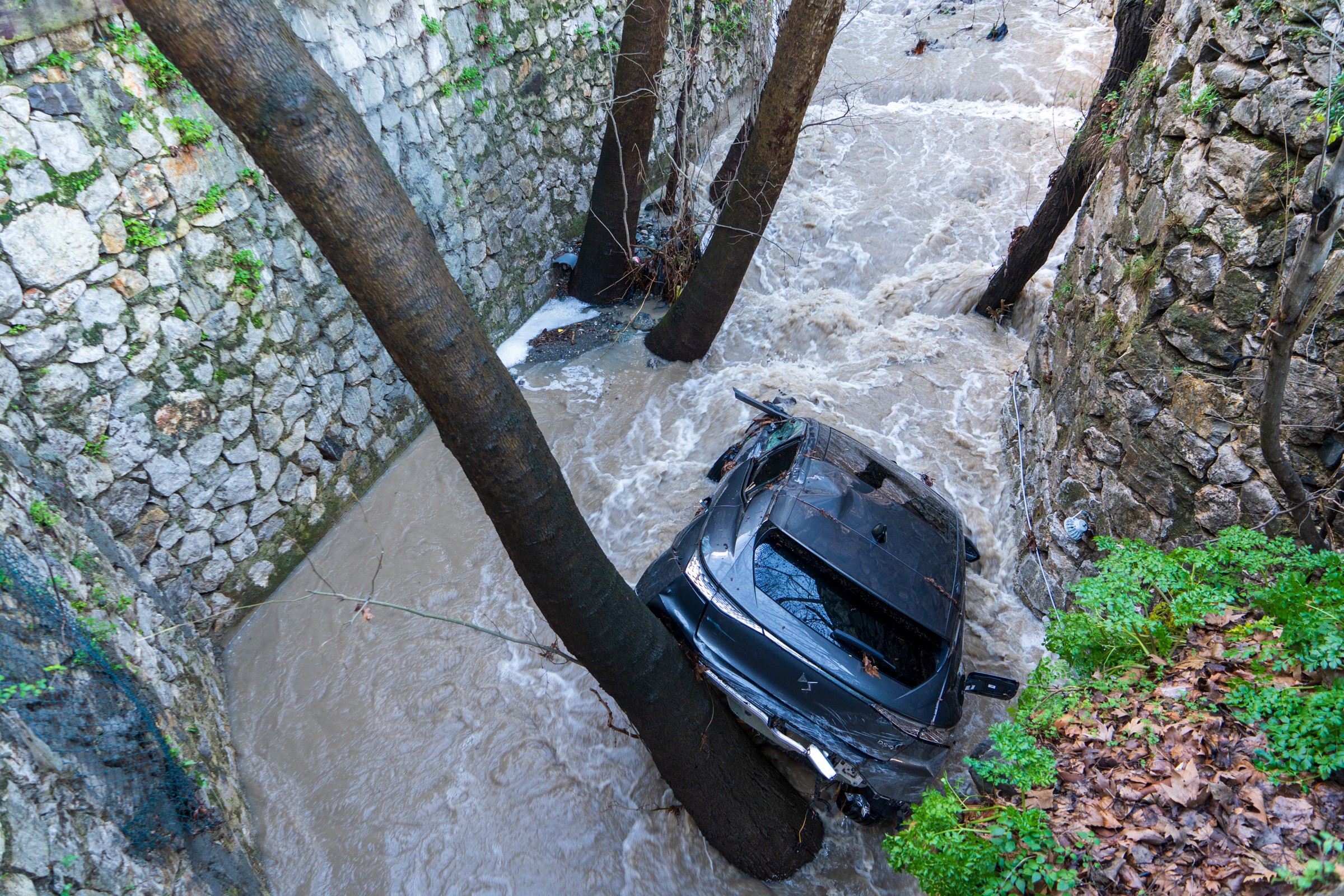 Taşkın nedeniyle bölgedeki bir hayvan damının da zarar gördüğü bildirildi. Dereye sürüklenen otomobilin ise ağaçlara sıkışmış halde bulunduğu öğrenildi. Aracın bulunduğu noktadan çıkarılması için suyun akış hızının düşmesi bekleniyor.